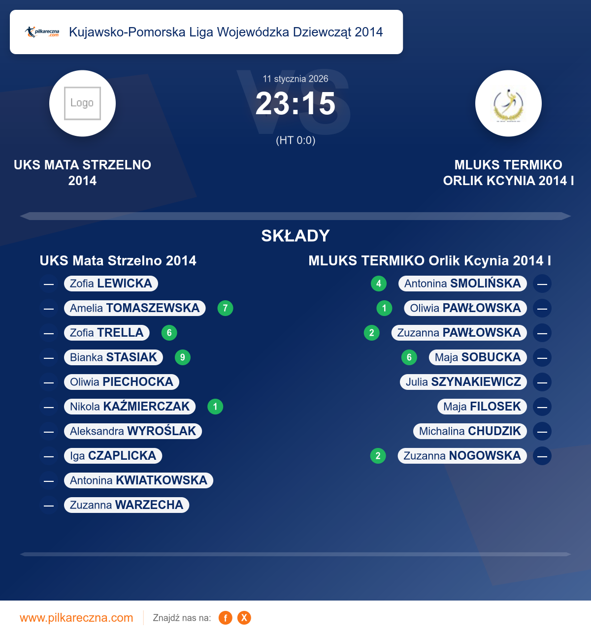 Zawodnicy: Maja Sobucka (6), Antonina Smolińska (4), Zuzanna Nogowska (2), Zuzanna Pawłowska (2), Oliwia Pawłowska (1), Julia Szynakiewicz, Maja Filosek, Michalina Chudzik