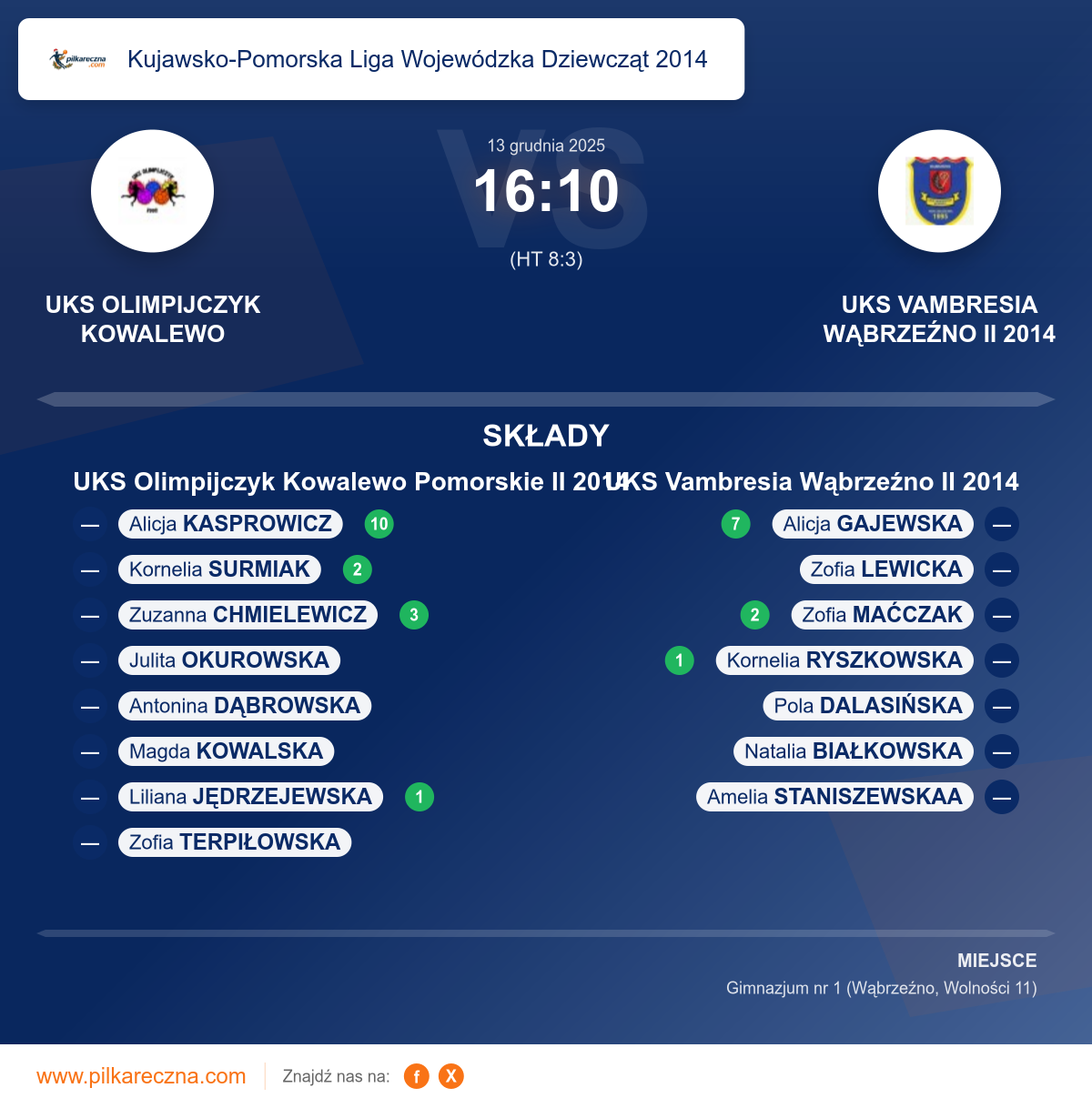 UKS Olimpijczyk Kowalewo Pomorskie II 2014 16–10 UKS Vambresia Wąbrzeźno II 2014