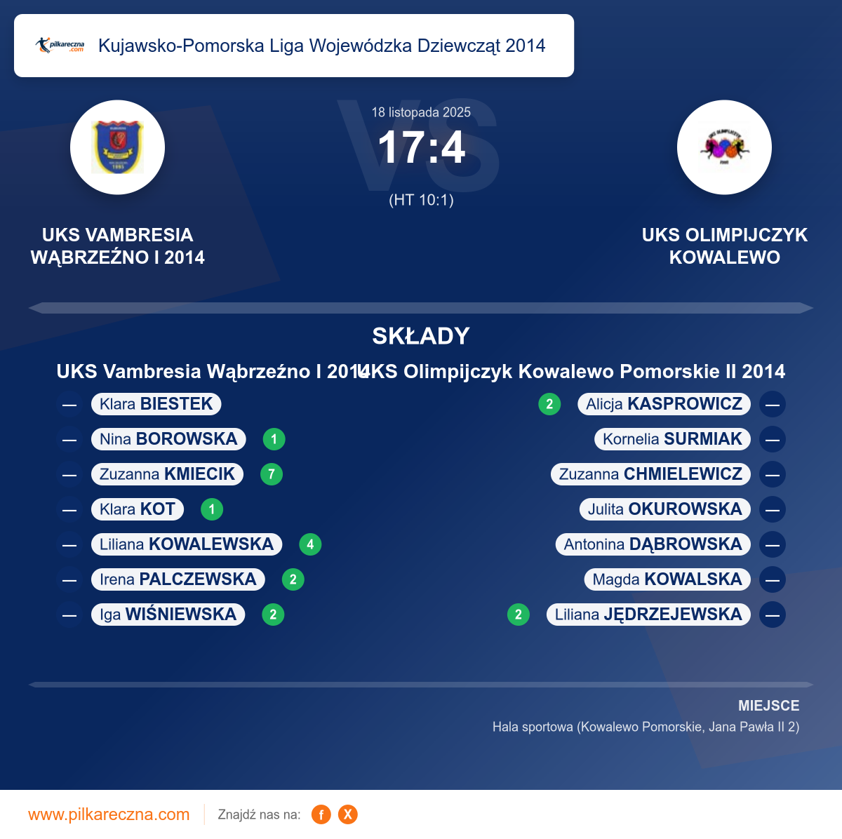 UKS Vambresia Wąbrzeźno I 2014 17–4 UKS Olimpijczyk Kowalewo Pomorskie II 2014