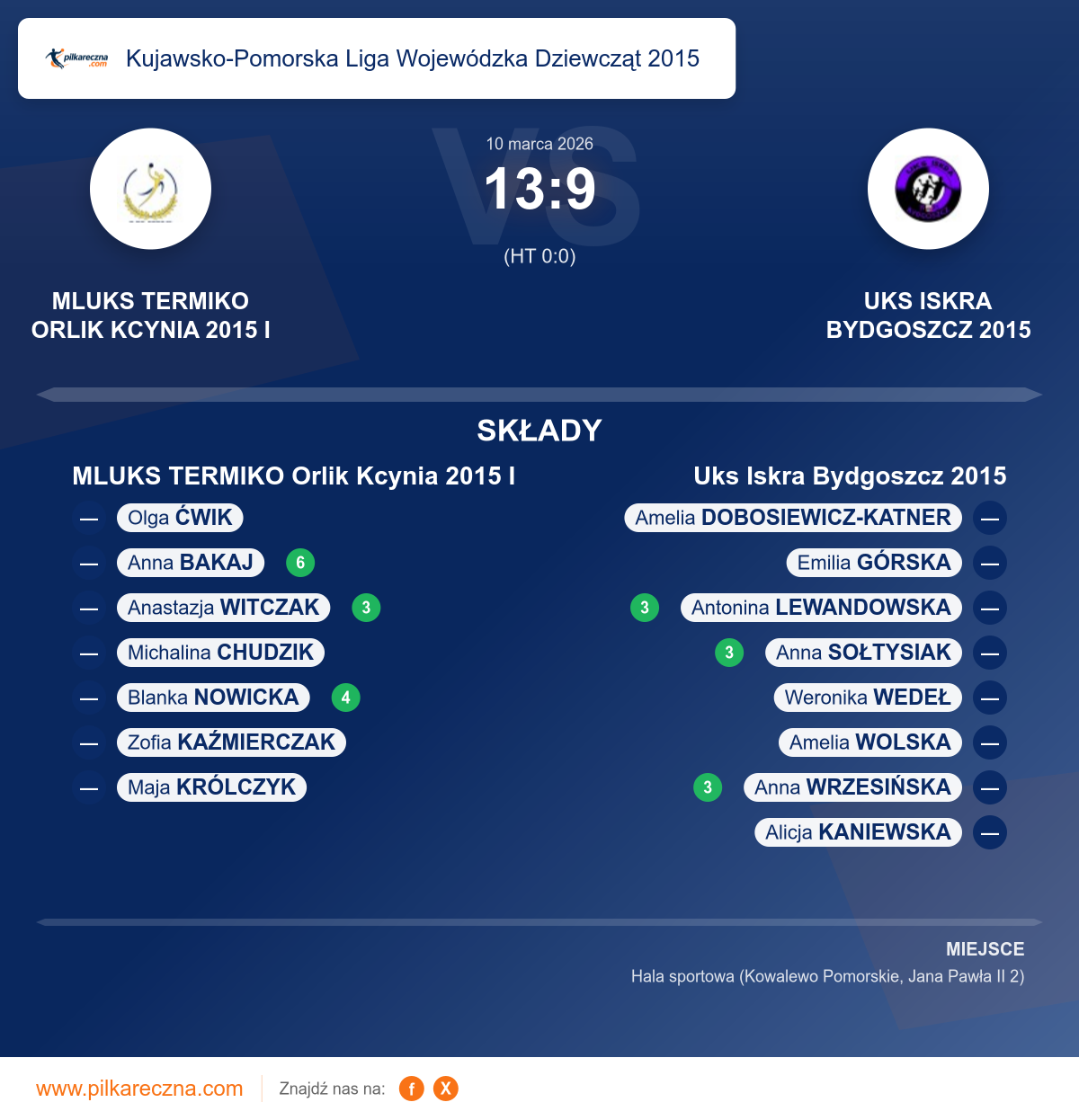 Wynik: 13–9 (HT 0–0)