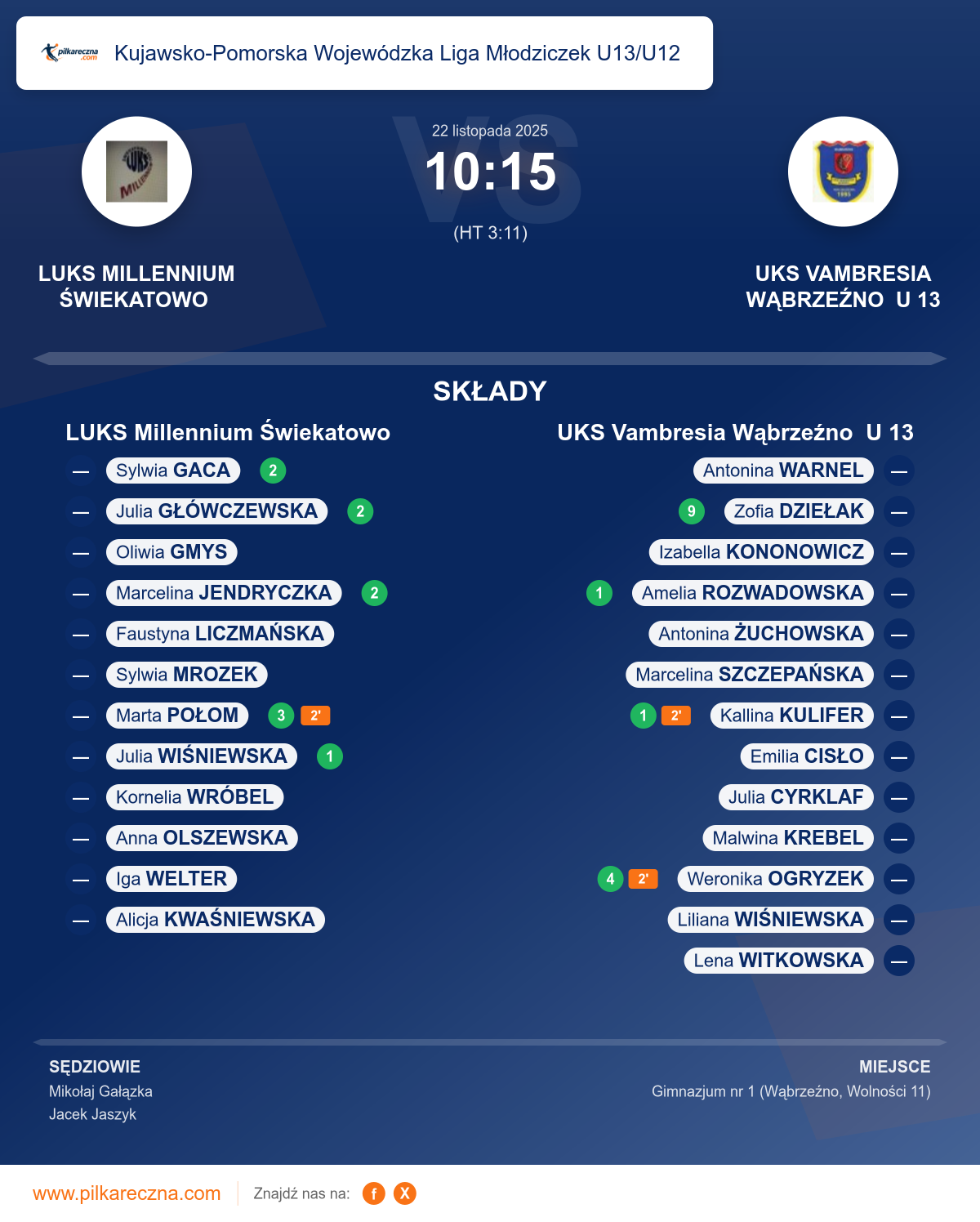 LUKS Millennium Świekatowo — UKS Vambresia Wąbrzeźno U 13