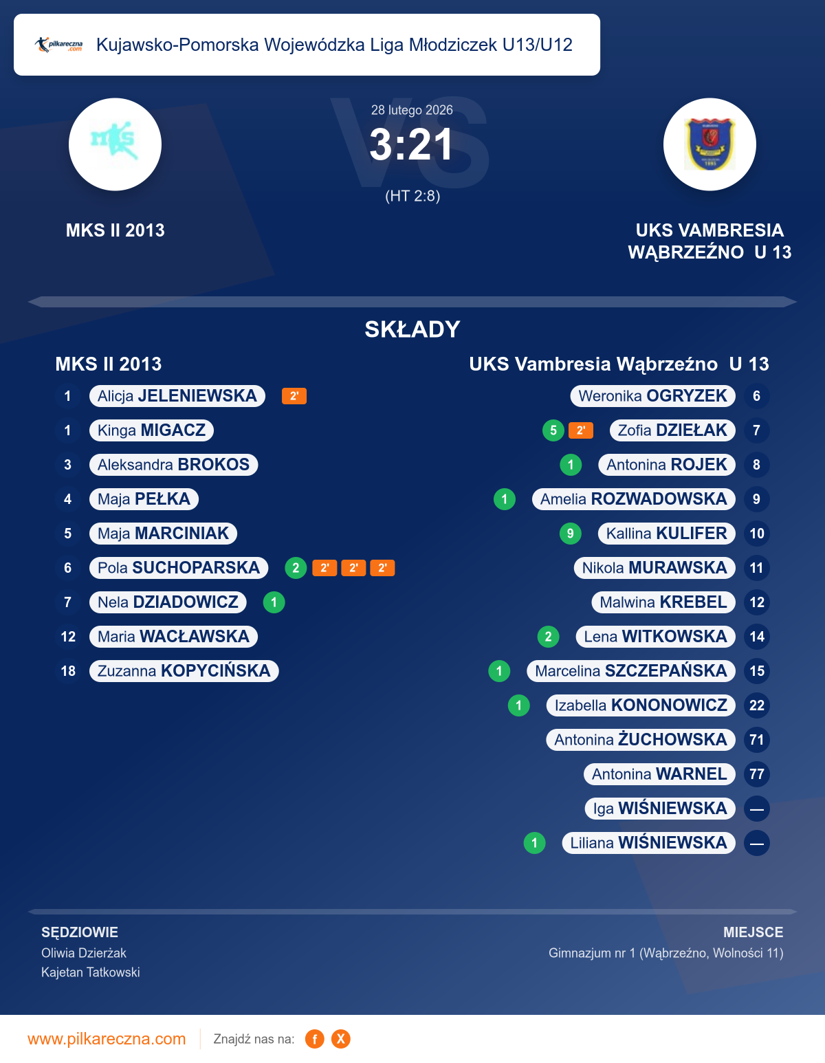 Zawodnicy: Kallina Kulifer (9), Zofia Dziełak (5), Lena Witkowska (2), Amelia Rozwadowska (1), Antonina Rojek (1), Izabella Kononowicz (1), Liliana Wiśniewska (1), Marcelina Szczepańska (1), Antonina Warnel, Antonina Żuchowska, Iga Wiśniewska, Malwina Krebel, Nikola Murawska, Weronika Ogryzek