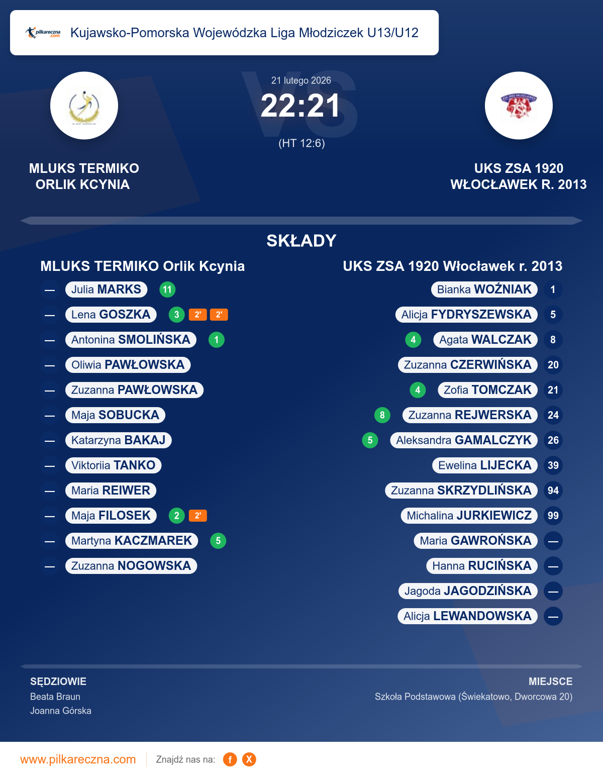 MLUKS TERMIKO Orlik Kcynia 22–21 UKS ZSA 1920 Włocławek r. 2013