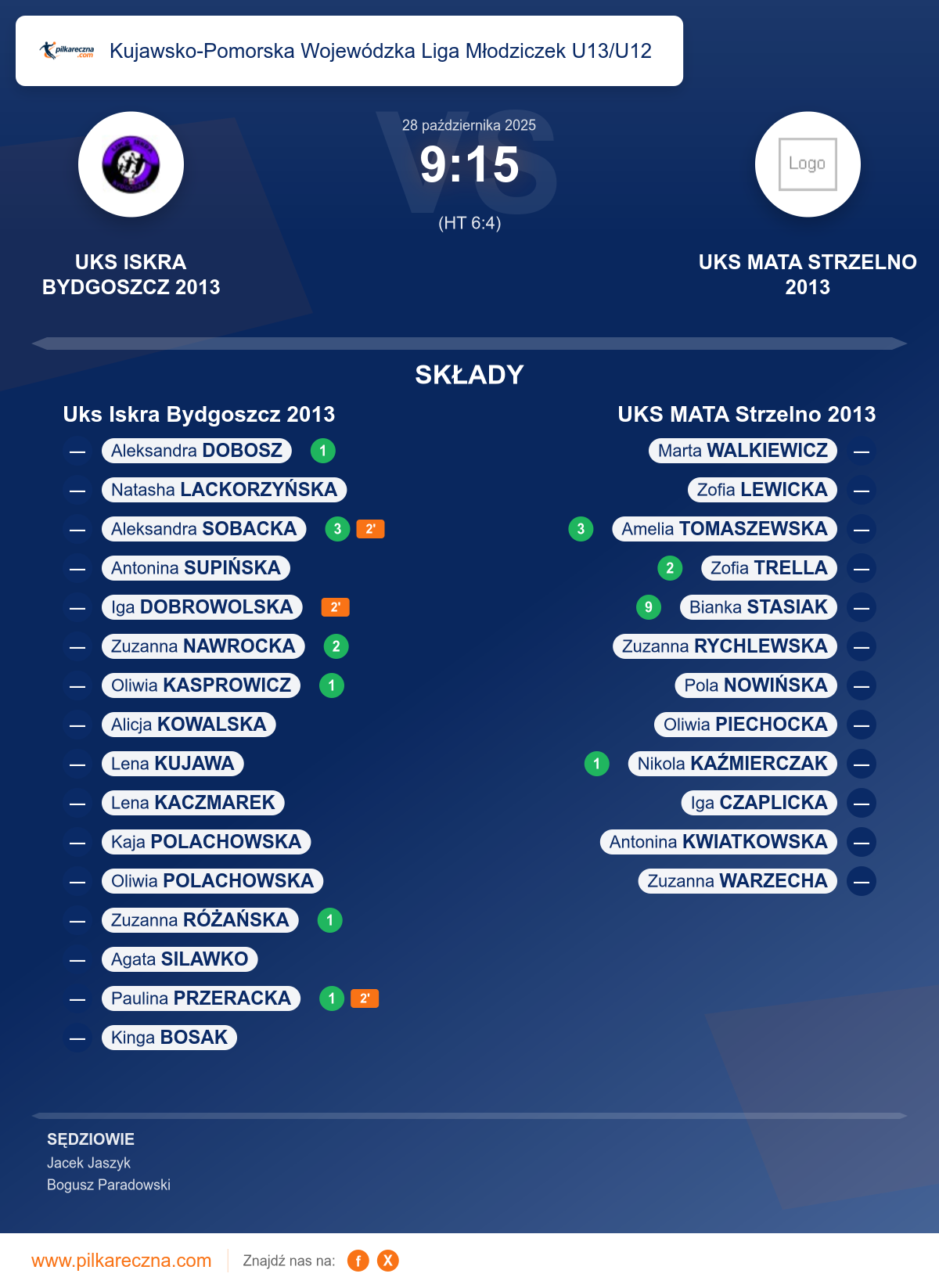 Zawodnicy: Bianka Stasiak (9), Amelia Tomaszewska (3), Zofia Trella (2), Nikola Kaźmierczak (1), Antonina Kwiatkowska, Iga Czaplicka, Marta Walkiewicz, Oliwia Piechocka, Pola Nowińska, Zofia Lewicka, Zuzanna Rychlewska, Zuzanna Warzecha