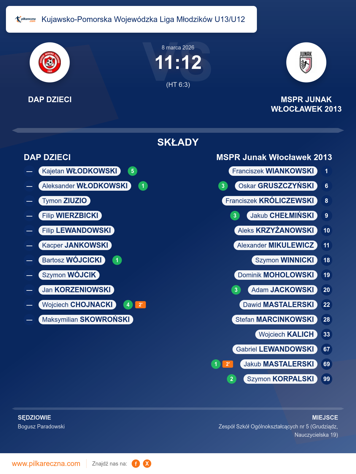 Zawodnicy: Kajetan Włodkowski (5), Wojciech Chojnacki (4), Aleksander Włodkowski (1), Bartosz Wójcicki (1), Filip Lewandowski, Filip Wierzbicki, Jan Korzeniowski, Kacper Jankowski, Maksymilian Skowroński, Szymon Wójcik, Tymon Ziuzio