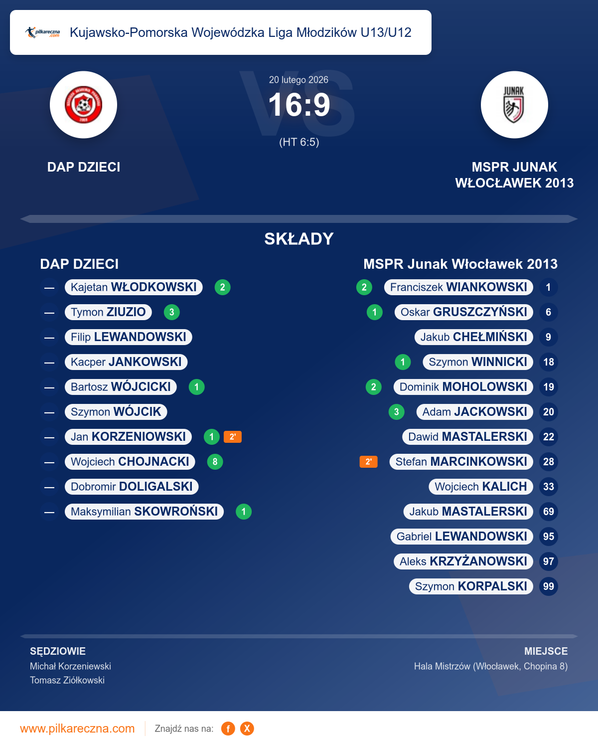 Zawodnicy: Wojciech Chojnacki (8), Tymon Ziuzio (3), Kajetan Włodkowski (2), Bartosz Wójcicki (1), Jan Korzeniowski (1), Maksymilian Skowroński (1), Dobromir Doligalski, Filip Lewandowski, Kacper Jankowski, Szymon Wójcik