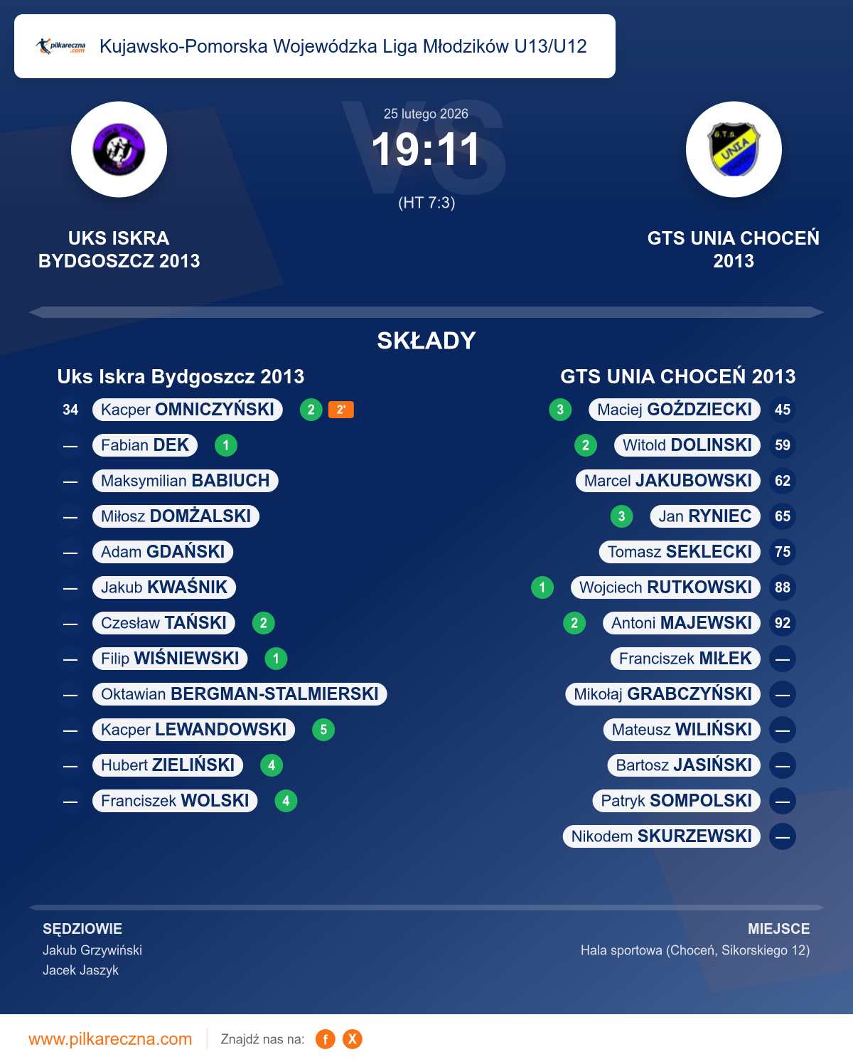 Sędziowali: Jakub Grzywiński, Jacek Jaszyk