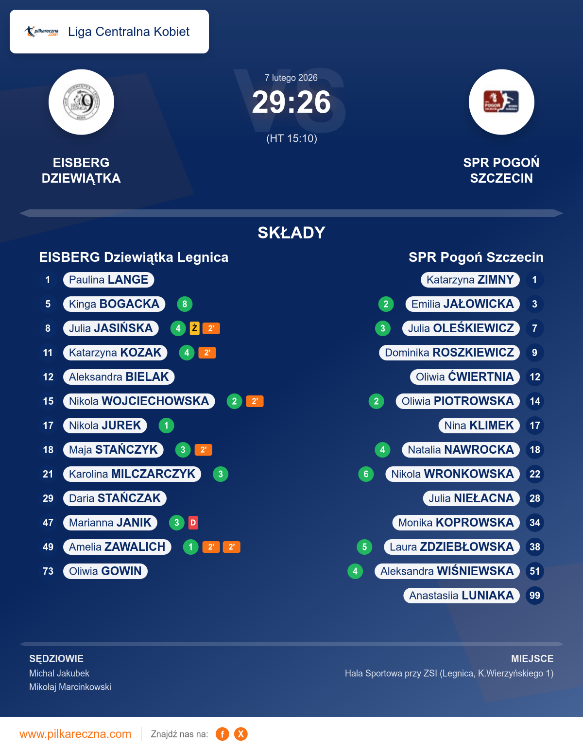 EISBERG Dziewiątka Legnica 29–26 SPR Pogoń Szczecin