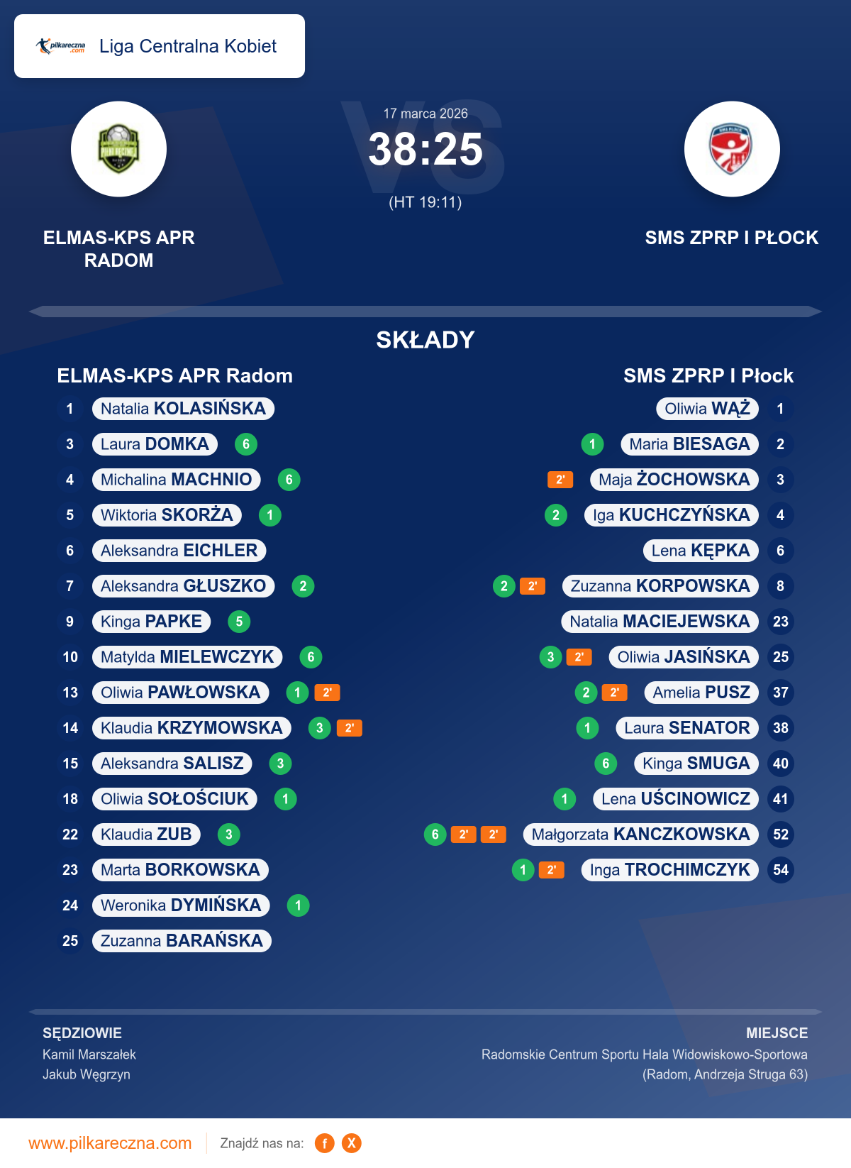 Sędziowali: Kamil Marszałek, Jakub Węgrzyn
