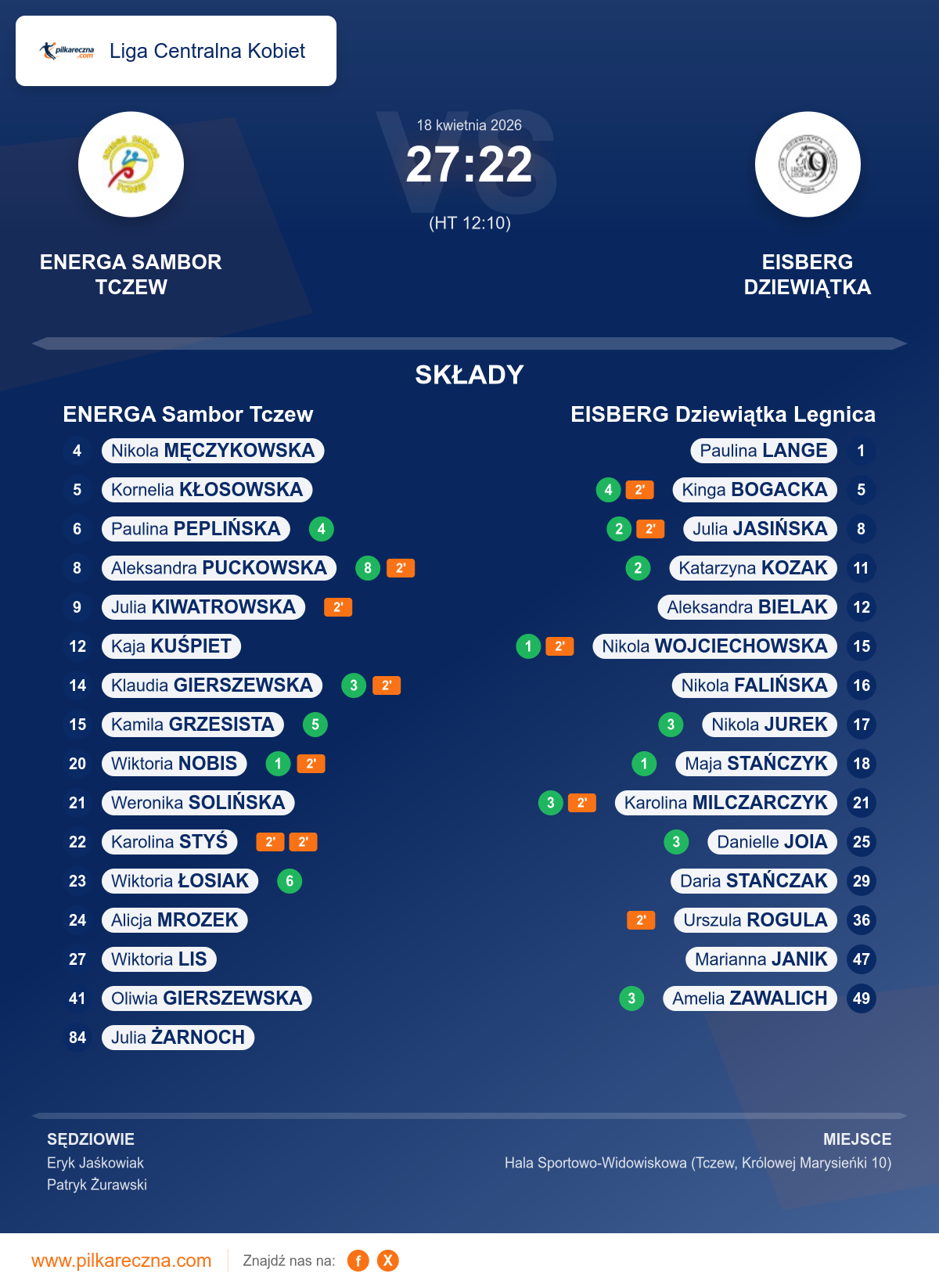 ENERGA Sambor Tczew 27–22 EISBERG Dziewiątka Legnica