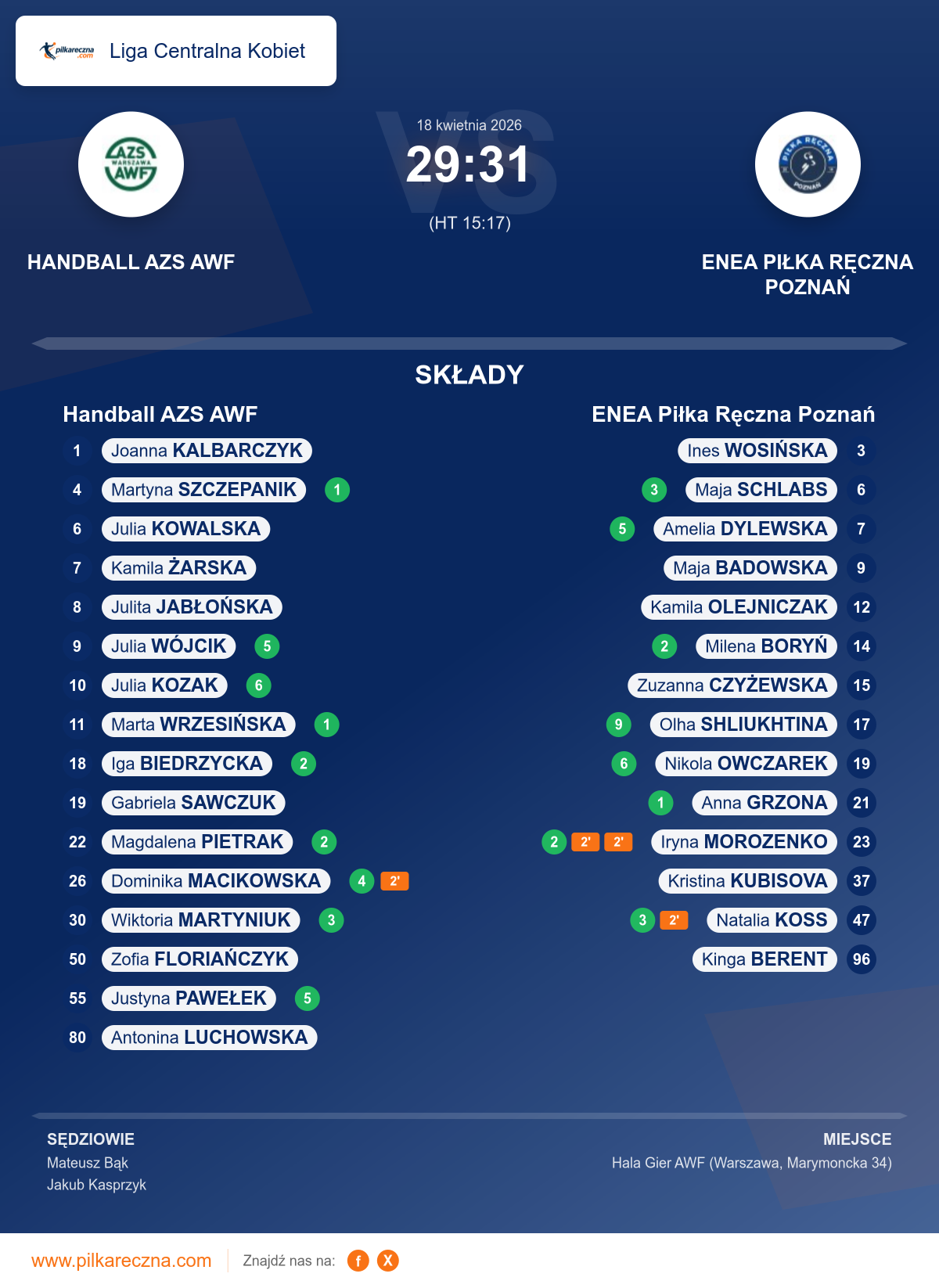 Handball AZS AWF 29–31 ENEA Piłka Ręczna Poznań