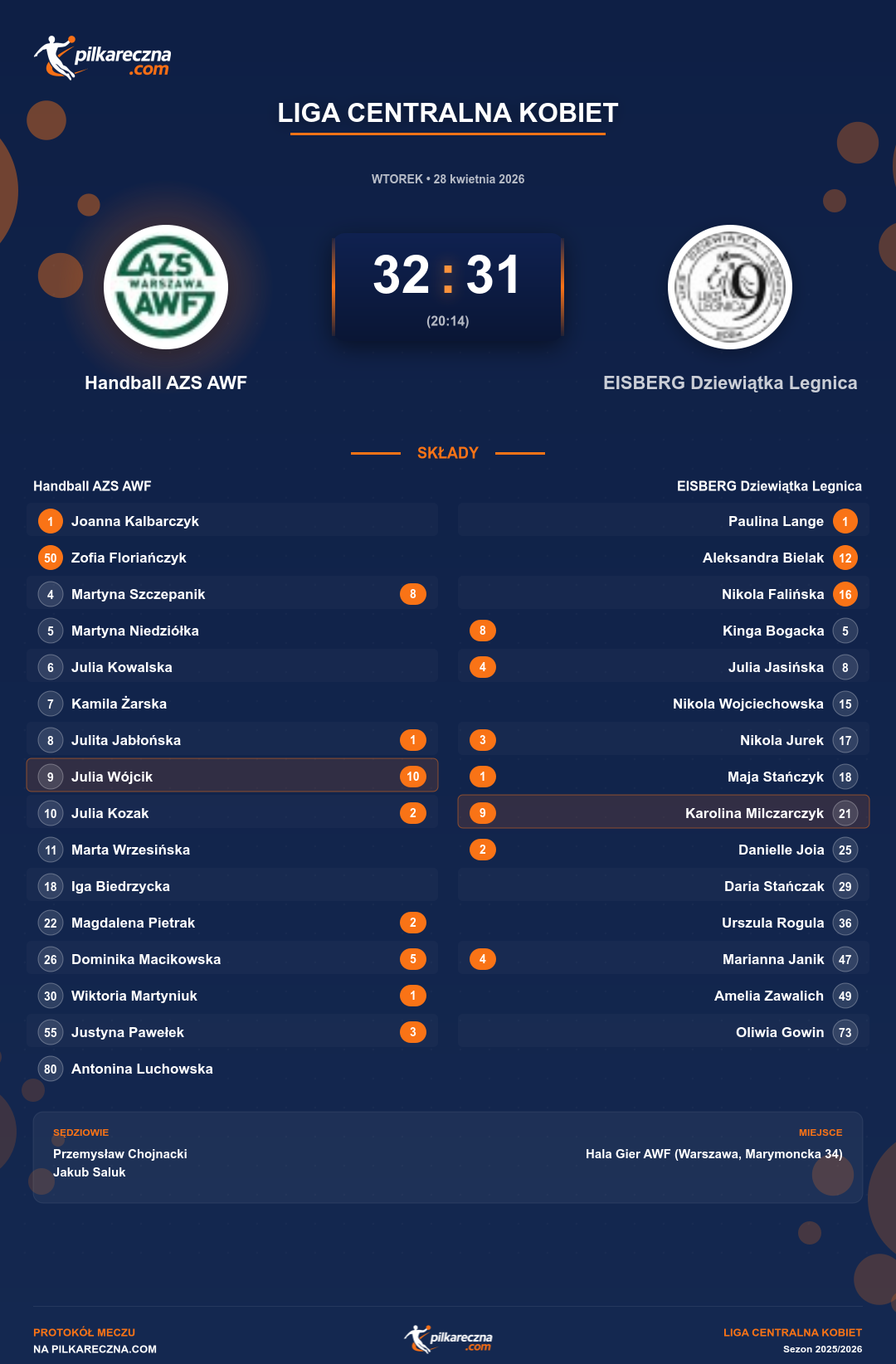 Wynik: 32–31 (HT 20–14)