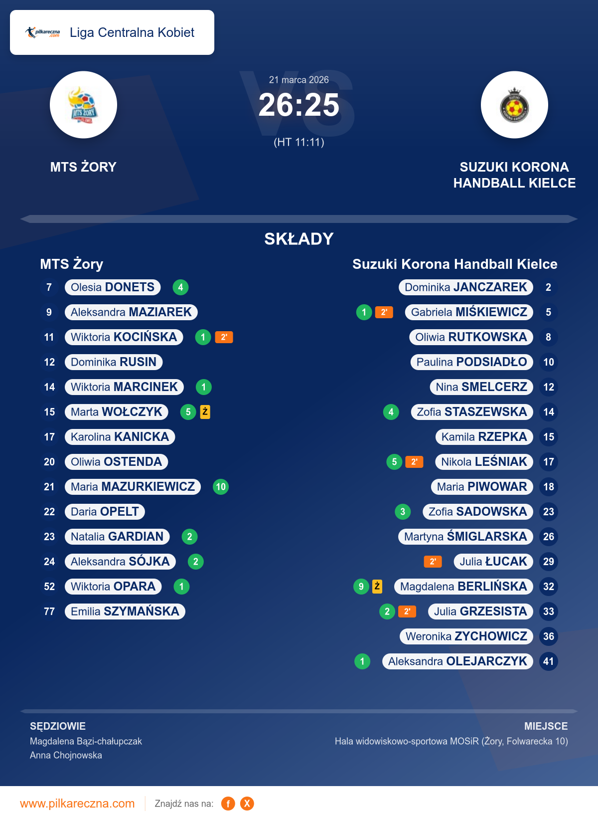 MTS Żory 26–25 Suzuki Korona Handball Kielce