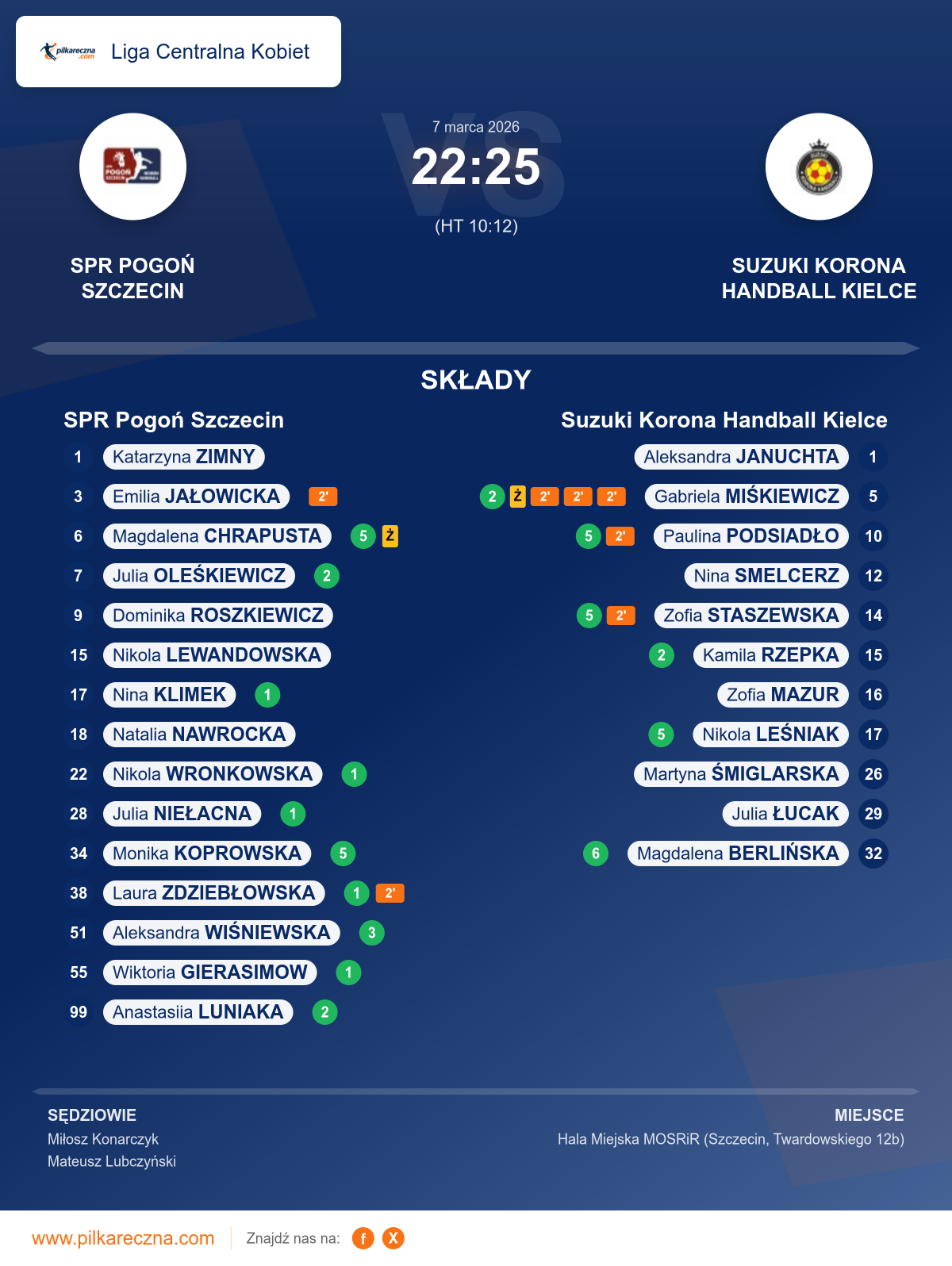SPR Pogoń Szczecin 22–25 Suzuki Korona Handball Kielce