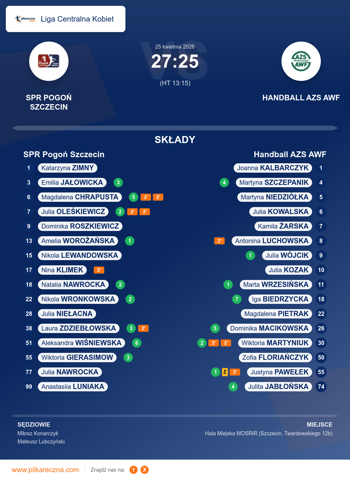 Wynik: 27–25 (HT 13–15)