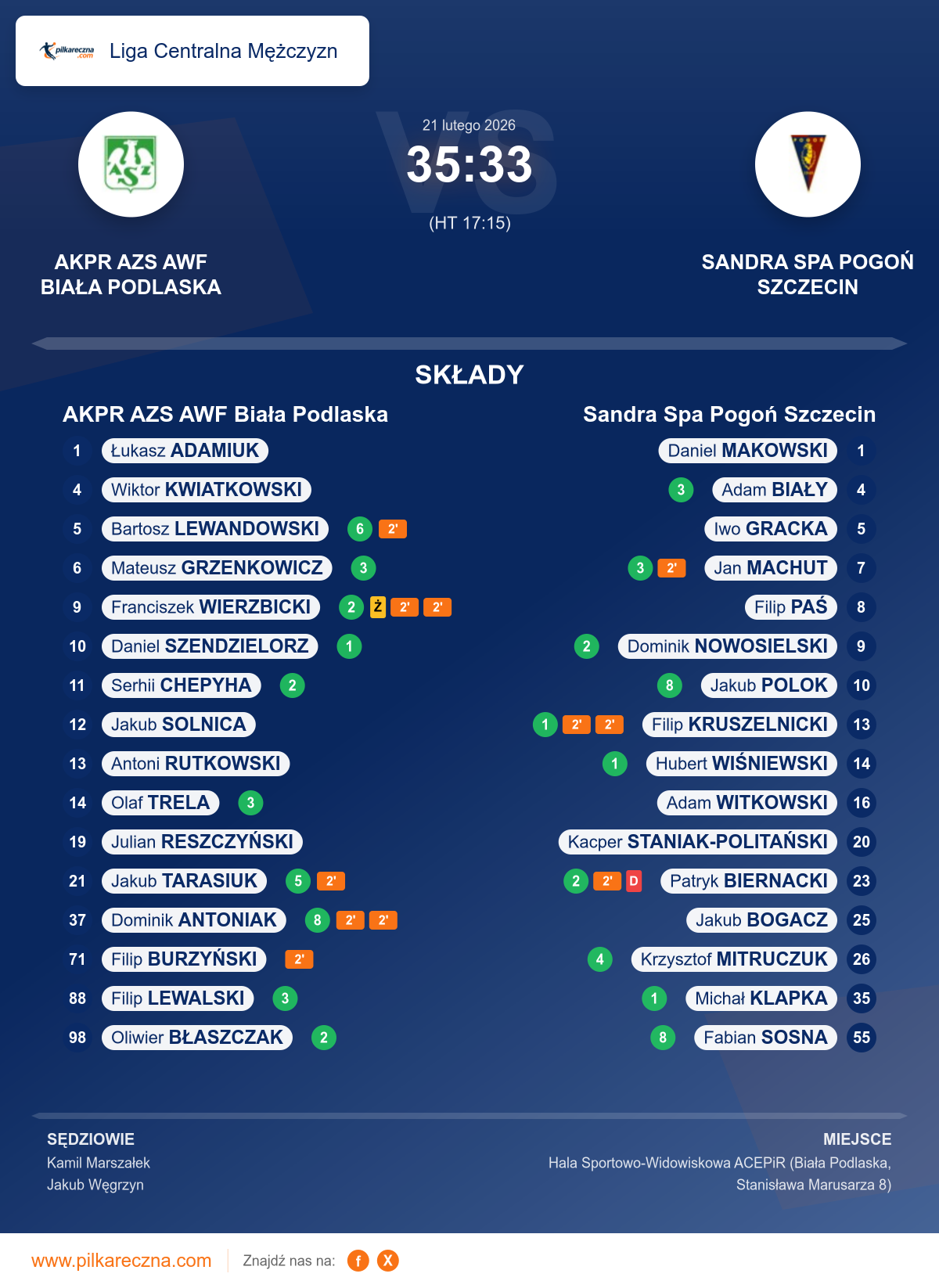 AKPR AZS AWF Biała Podlaska 35–33 Sandra Spa Pogoń Szczecin