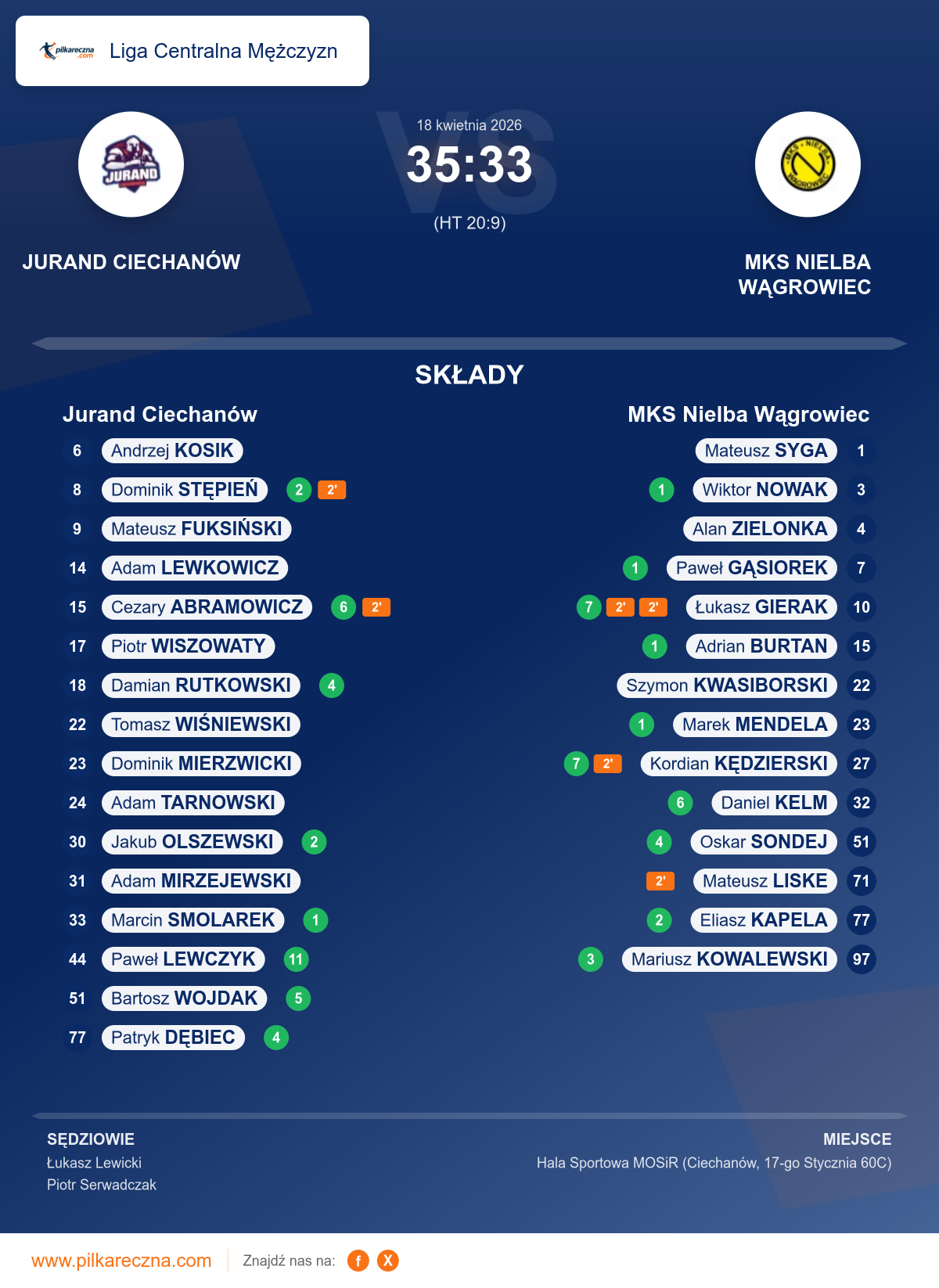 Jurand Ciechanów 35–33 MKS Nielba Wągrowiec