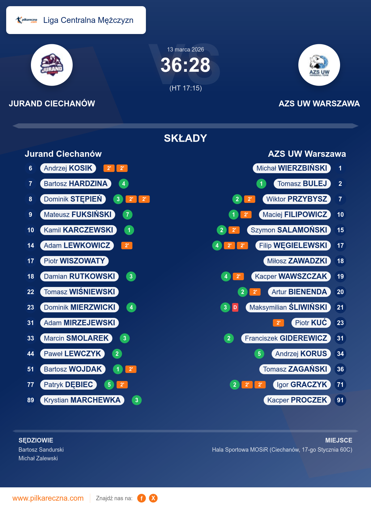 Sędziowali: Bartosz Sandurski, Michał Zalewski