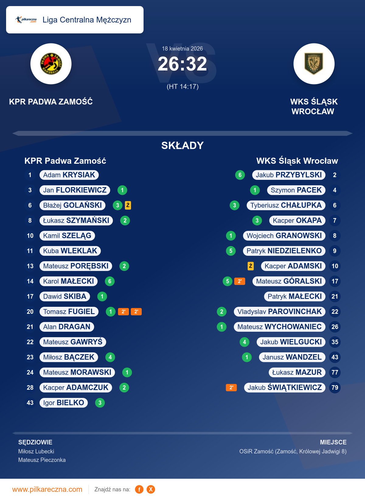 KPR Padwa Zamość 26–32 WKS Śląsk Wrocław