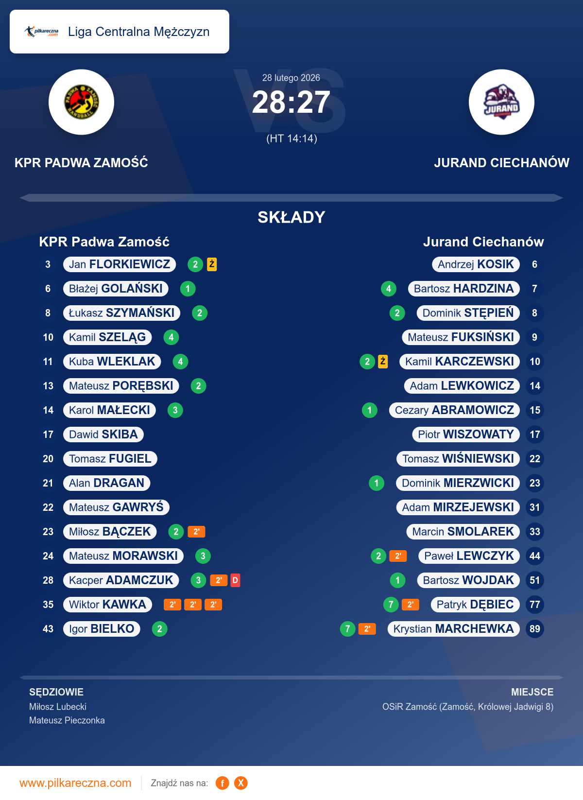 KPR Padwa Zamość 28–27 Jurand Ciechanów