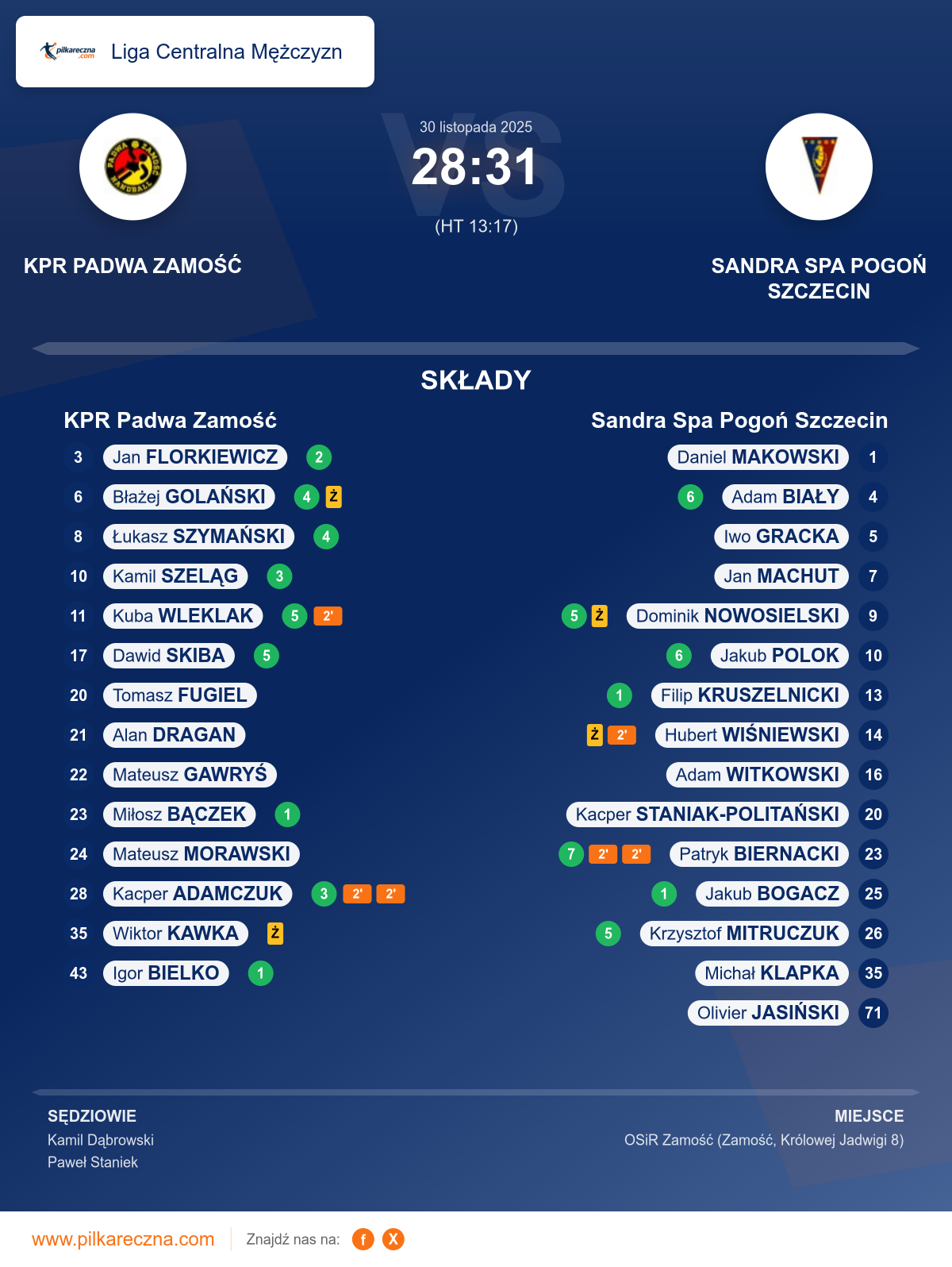KPR Padwa Zamość — Sandra Spa Pogoń Szczecin