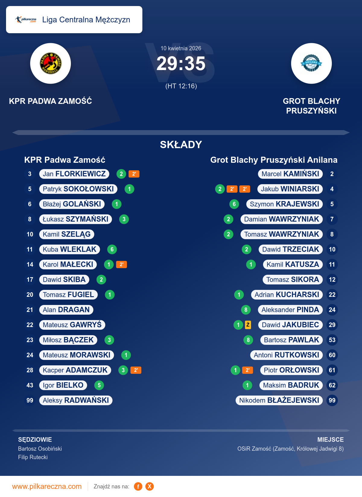 KPR Padwa Zamość — Grot Blachy Pruszyński Anilana