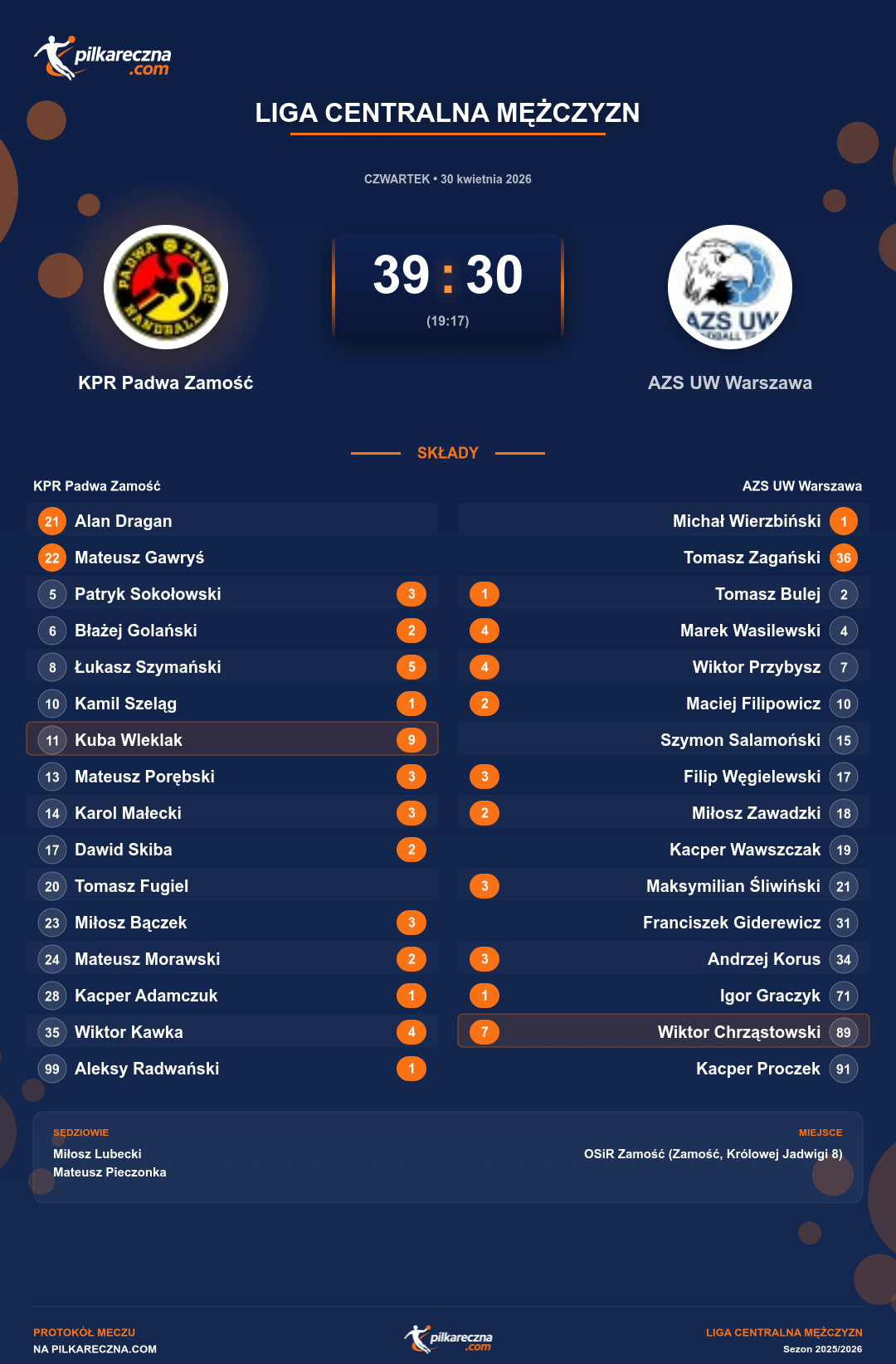 KPR Padwa Zamość 39–30 AZS UW Warszawa