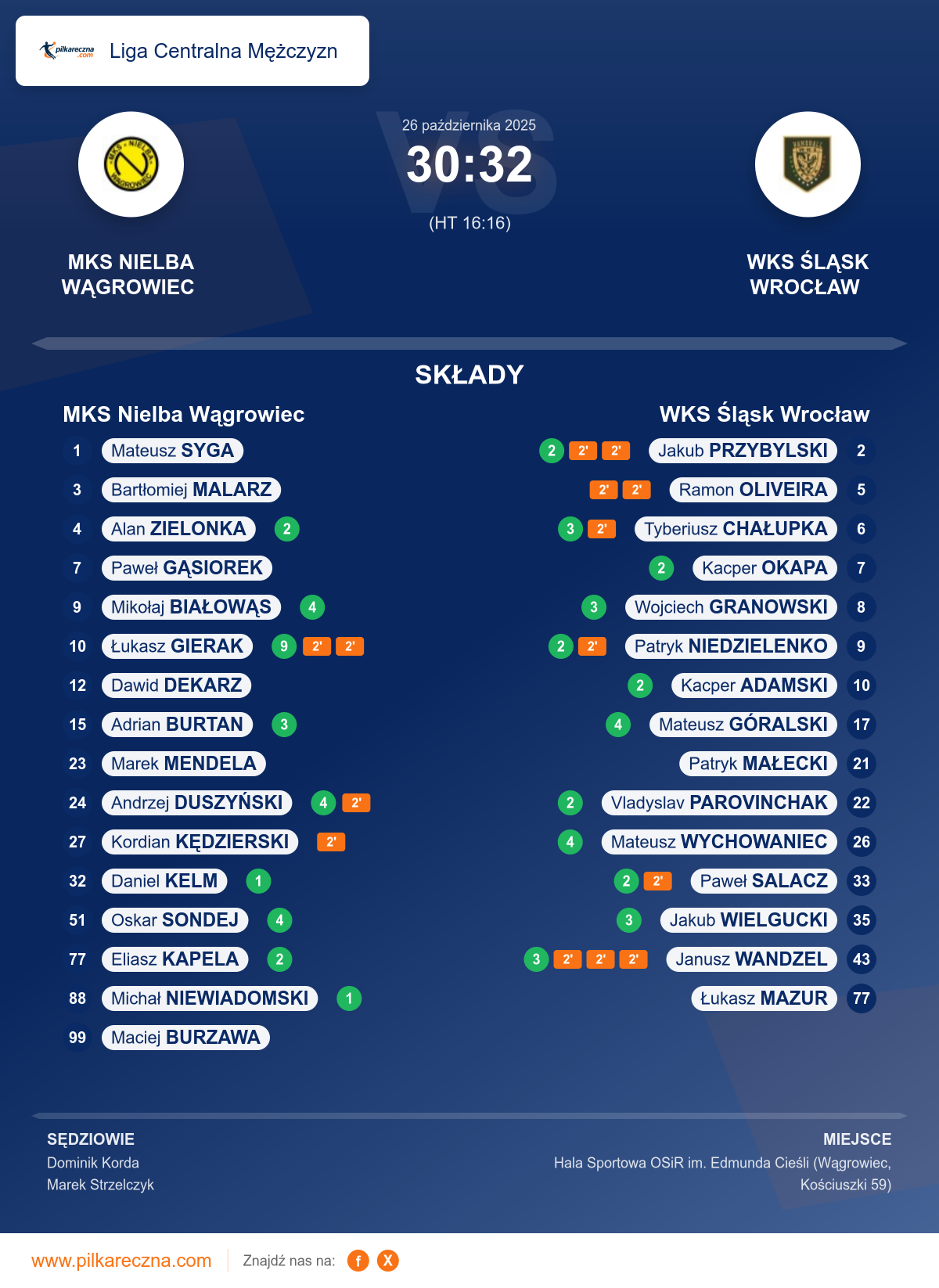 MKS Nielba Wągrowiec 30–32 WKS Śląsk Wrocław