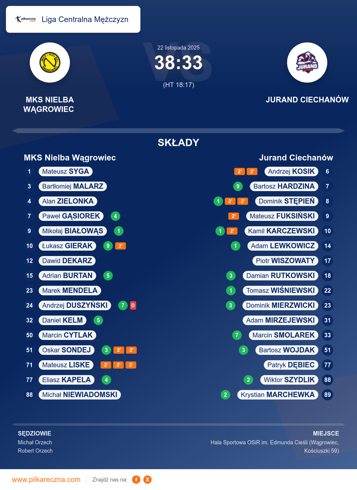 MKS Nielba Wągrowiec 38–33 Jurand Ciechanów