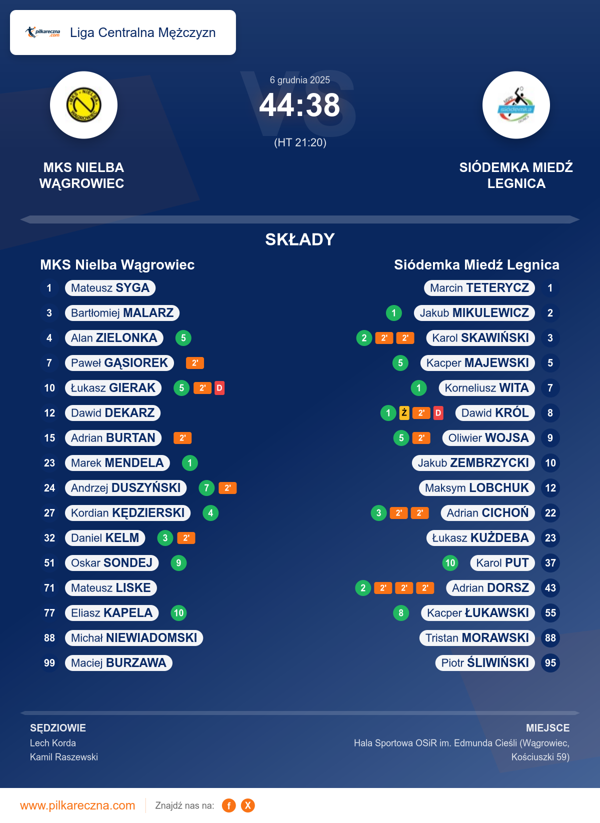 MKS Nielba Wągrowiec 44–38 Siódemka Miedź Legnica