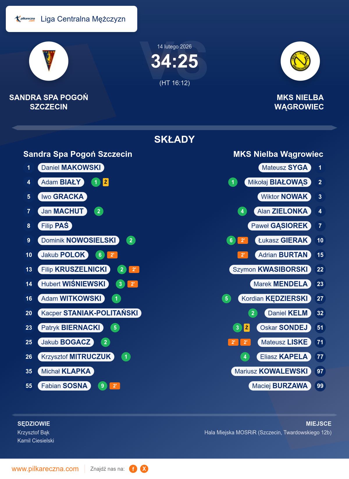 Wynik: 34–25 (HT 16–12)
