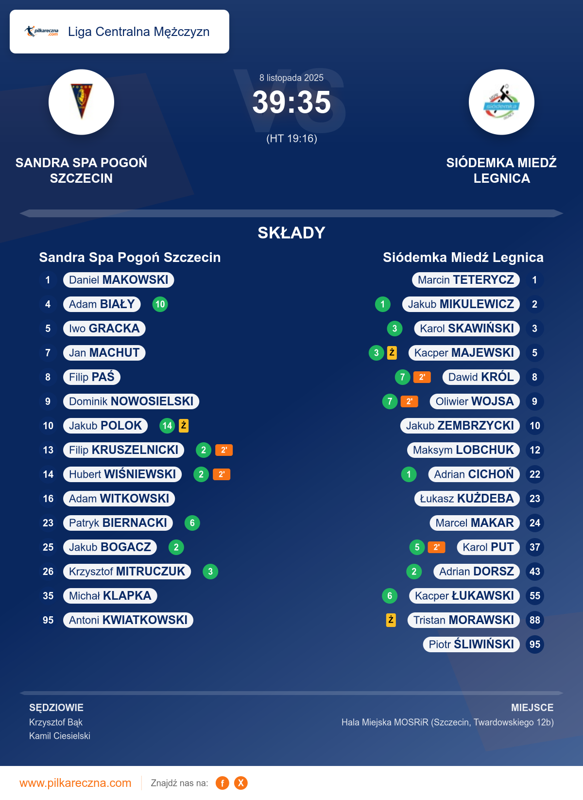 Sandra Spa Pogoń Szczecin 39–35 Siódemka Miedź Legnica