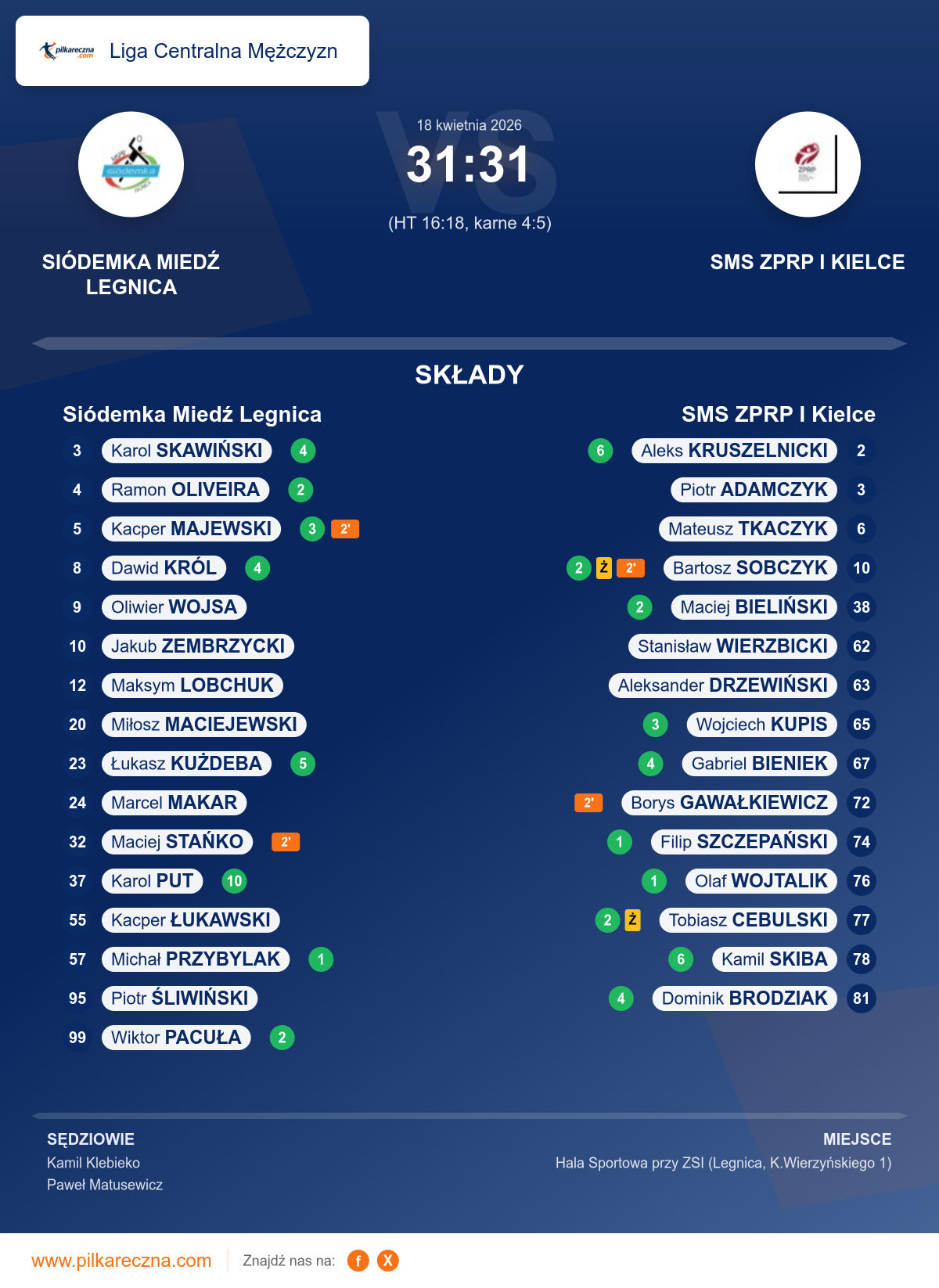 Sędziowali: Kamil Klebieko, Paweł Matusewicz