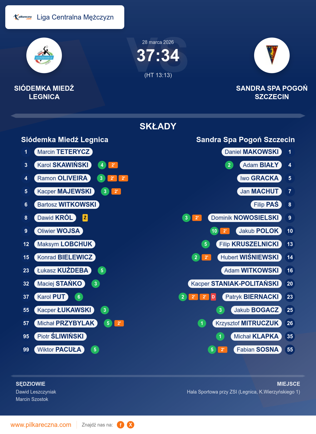 Siódemka Miedź Legnica 37–34 Sandra Spa Pogoń Szczecin