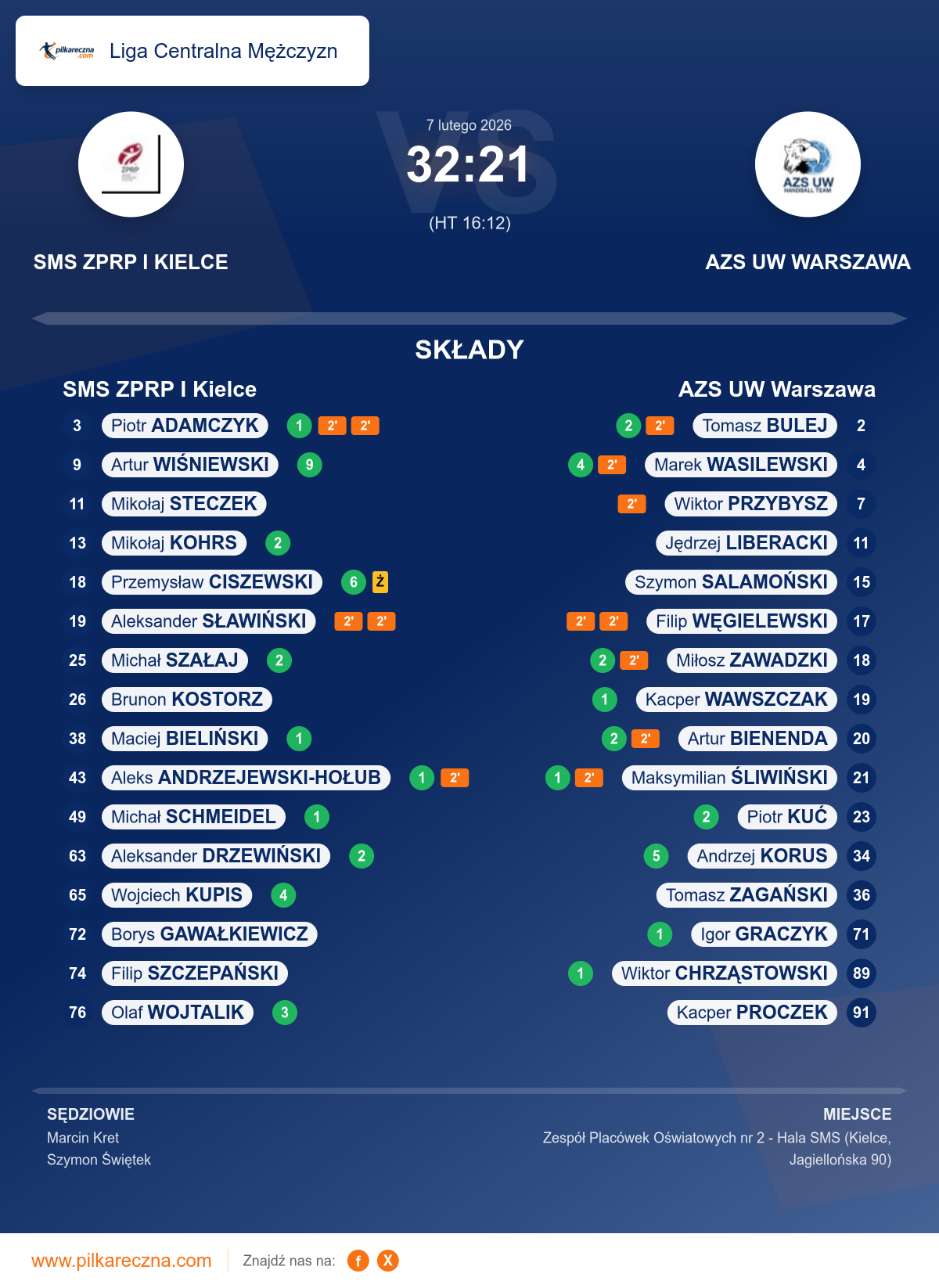 Wynik: 32–21 (HT 16–12)