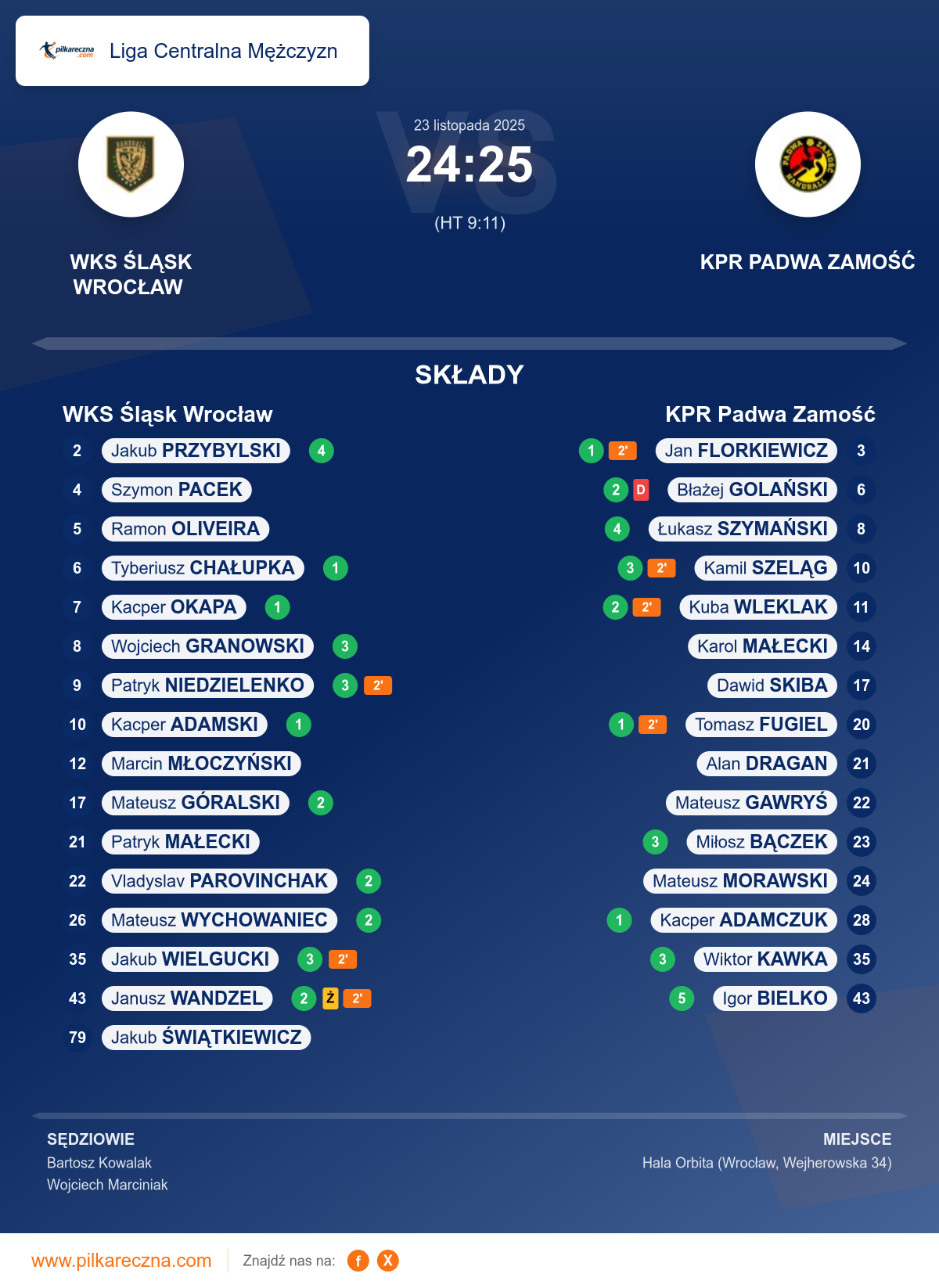 WKS Śląsk Wrocław 24–25 KPR Padwa Zamość
