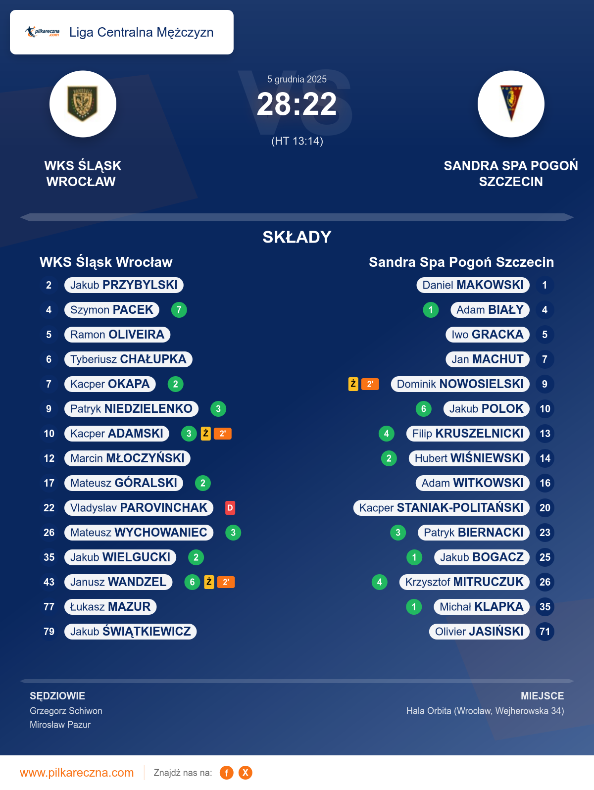 WKS Śląsk Wrocław 28–22 Sandra Spa Pogoń Szczecin