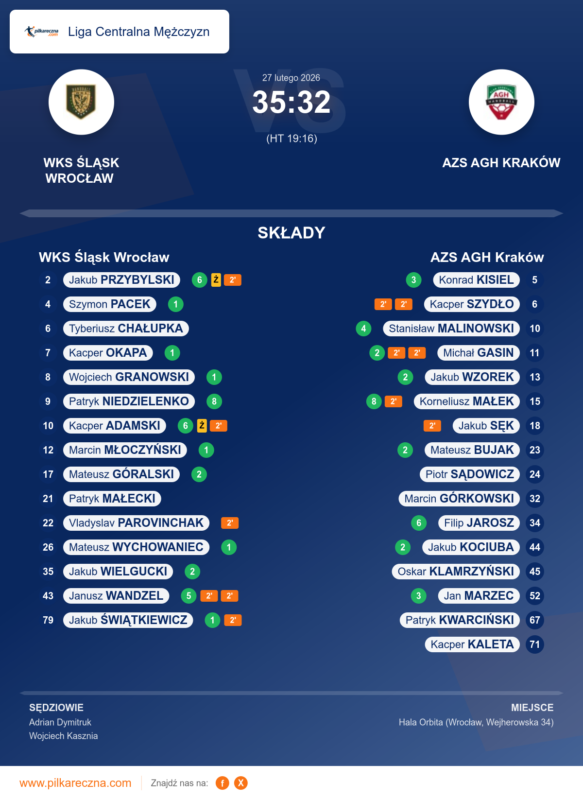 Sędziowali: Adrian Dymitruk, Wojciech Kasznia