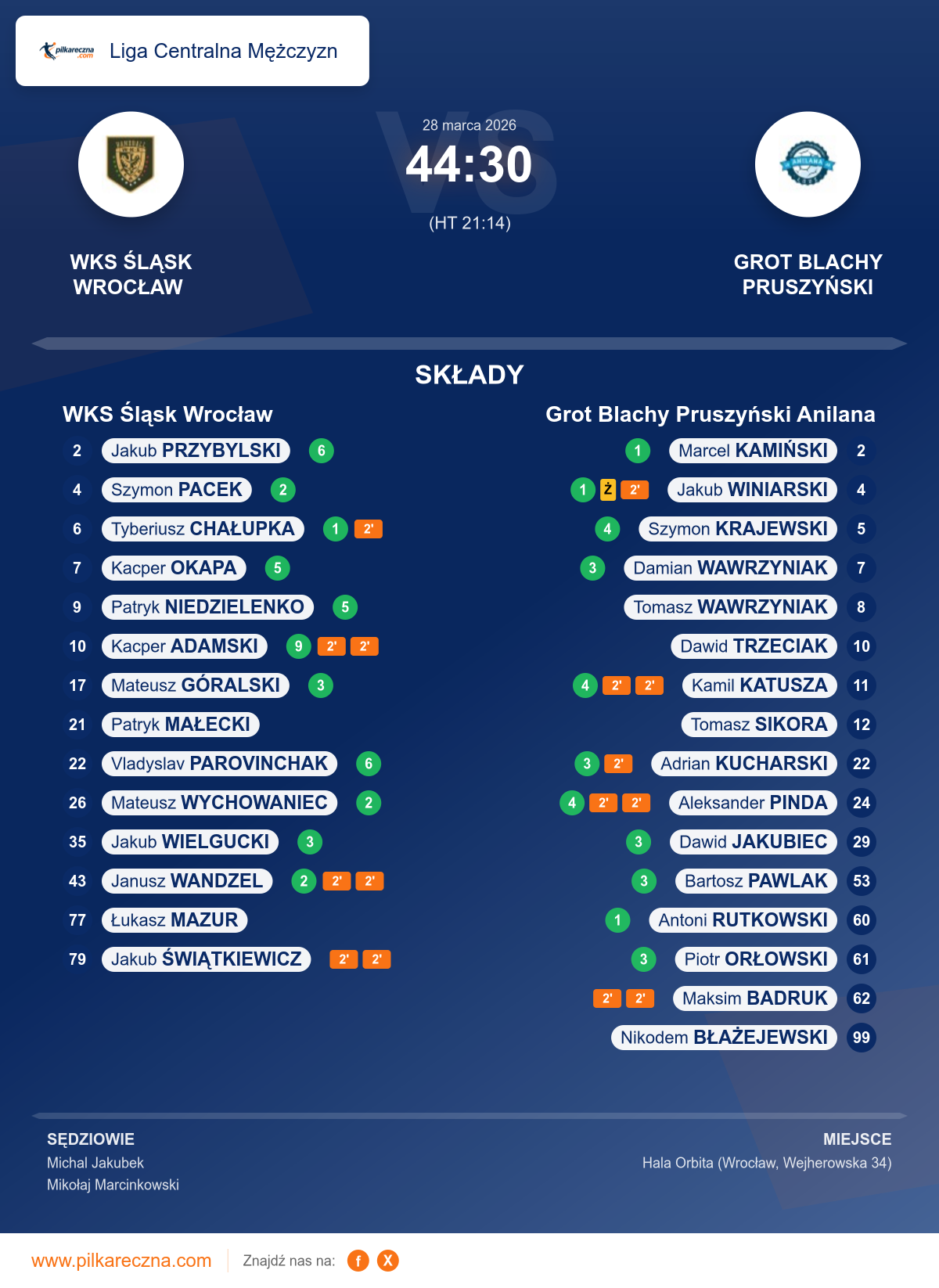 WKS Śląsk Wrocław 44–30 Grot Blachy Pruszyński Anilana