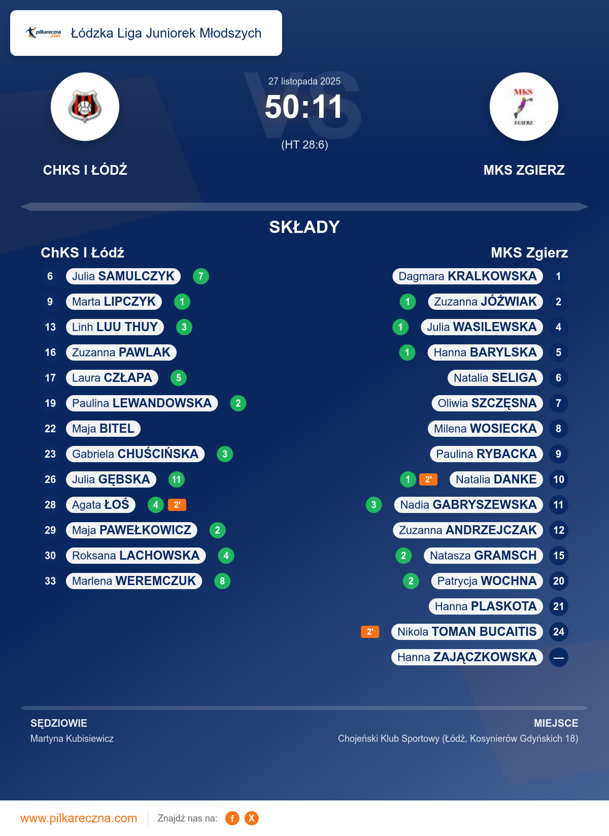 Zawodnicy: Julia Gębska (11), Marlena Weremczuk (8), Julia Samulczyk (7), Laura Człapa (5), Agata Łoś (4), Roksana Lachowska (4), Gabriela Chuścińska (3), Linh Luu Thuy (3), Maja Pawełkowicz (2), Paulina Lewandowska (2), Marta Lipczyk (1)