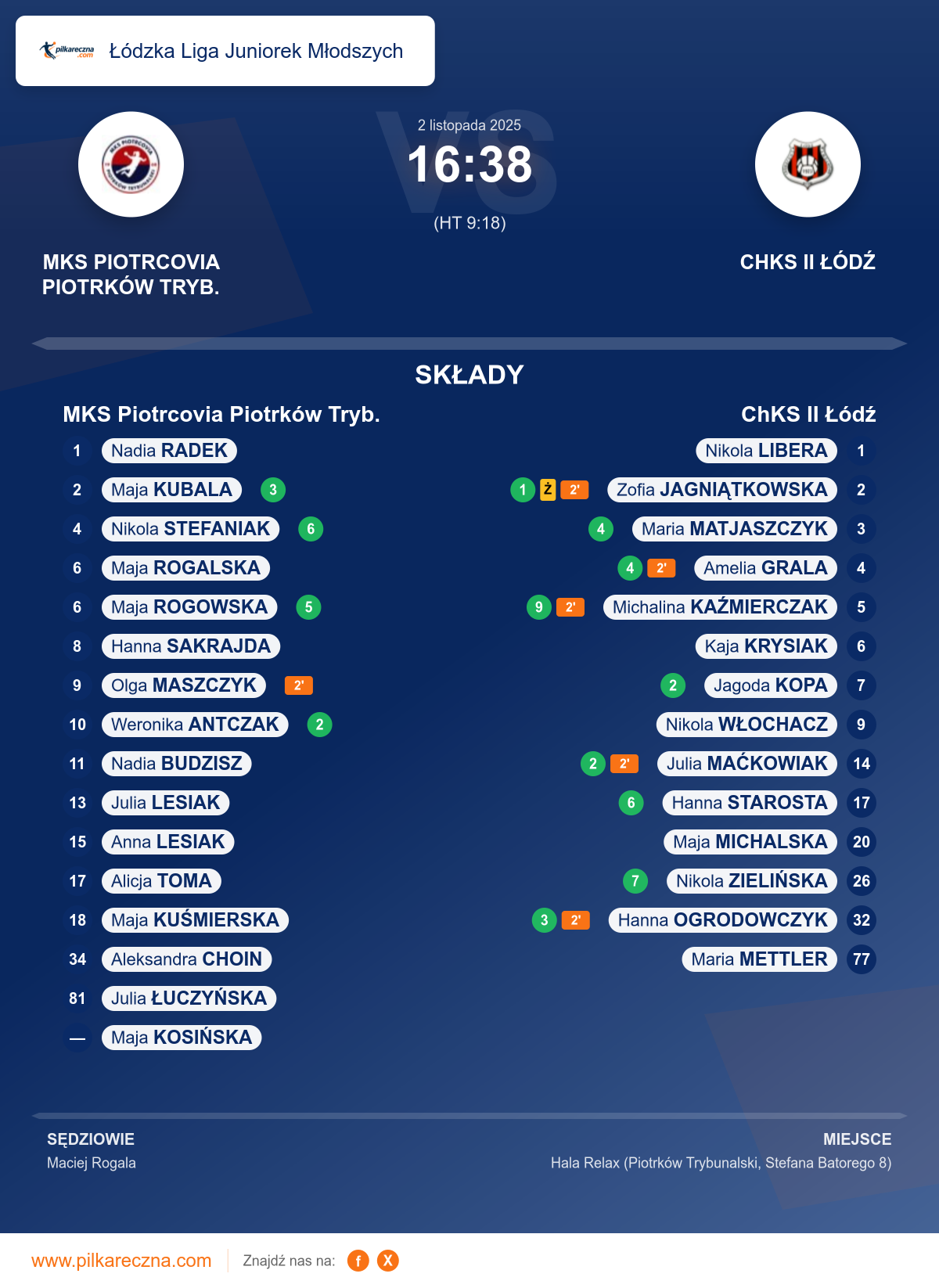 MKS Piotrcovia Piotrków Tryb. 16–38 ChKS II Łódź