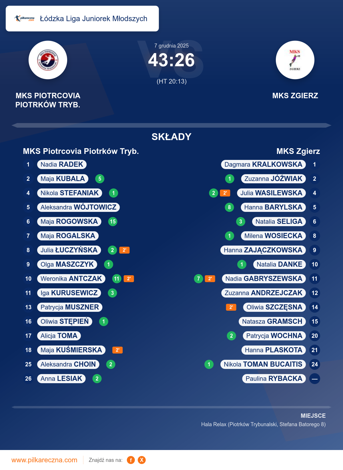 MKS Piotrcovia Piotrków Tryb. 43–26 MKS Zgierz