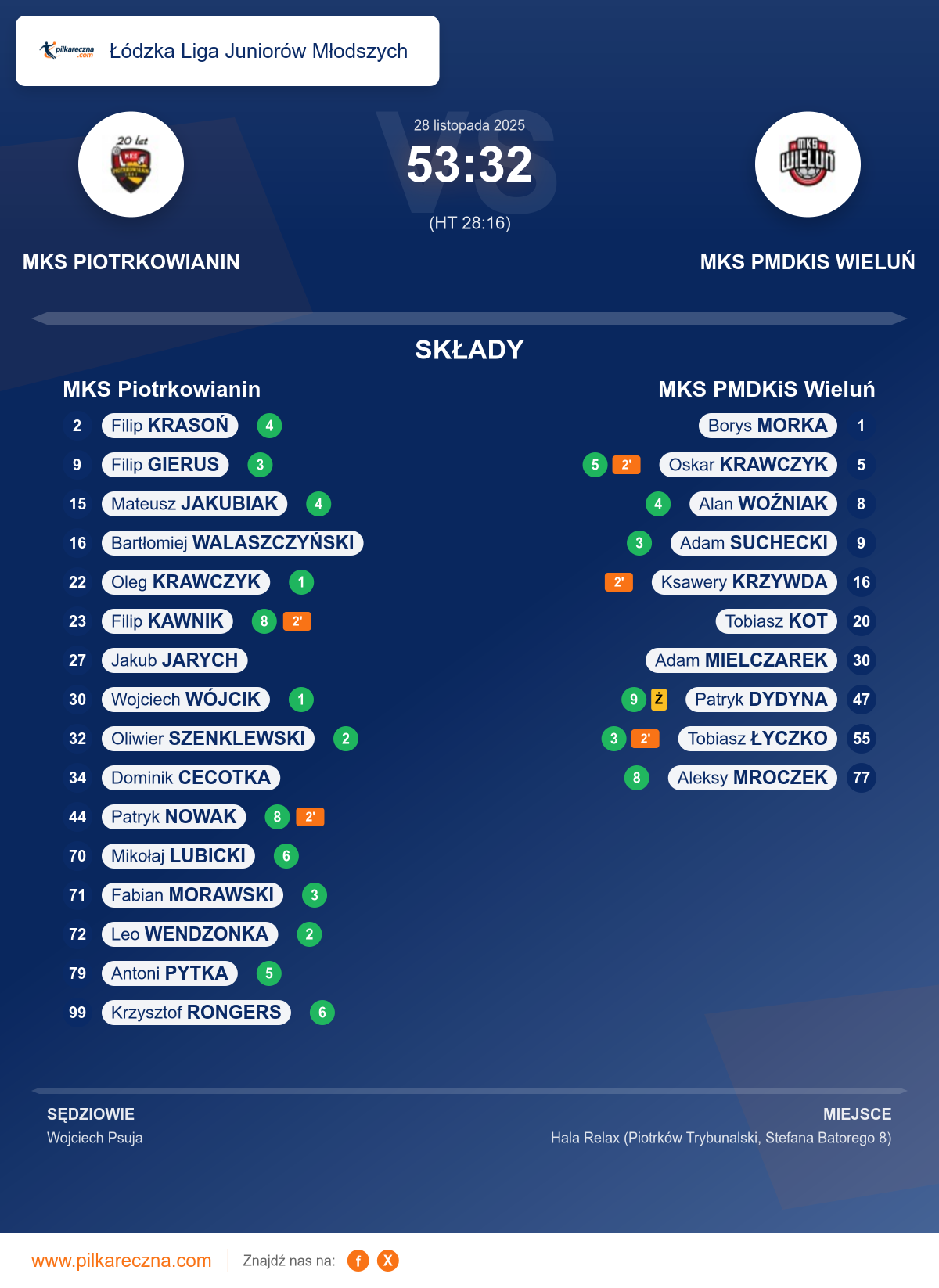 MKS Piotrkowianin 53–32 MKS PMDKiS Wieluń