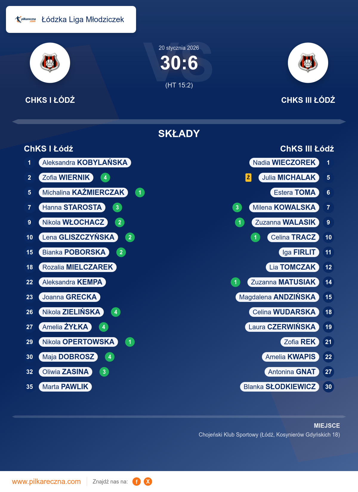 Zawodnicy: Amelia Żyłka (4), Maja Dobrosz (4), Nikola Zielińska (4), Zofia Wiernik (4), Hanna Starosta (3), Oliwia Zasina (3), Bianka Poborska (2), Lena Gliszczyńska (2), Nikola Włochacz (2), Michalina Kaźmierczak (1), Nikola Opertowska (1), Joanna Grecka, Marta Pawlik, Rozalia Mielczarek