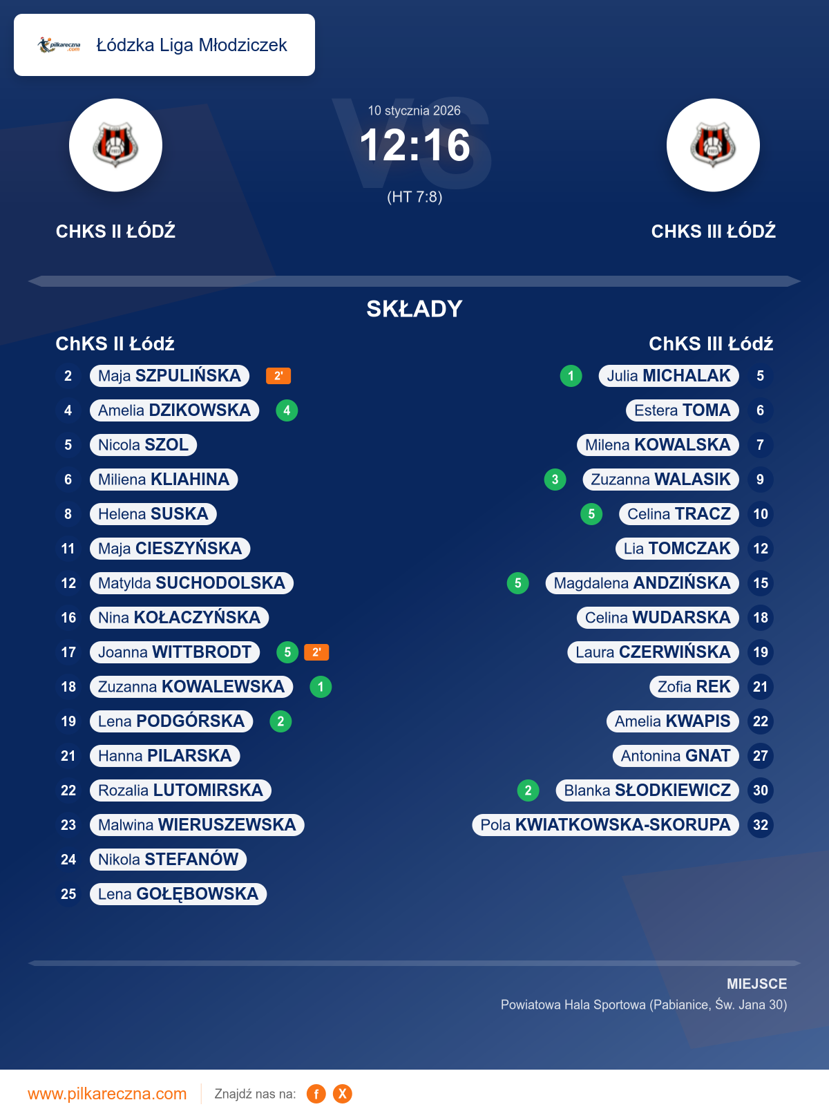 Hala: Powiatowa Hala Sportowa (Pabianice, Św. Jana 30)