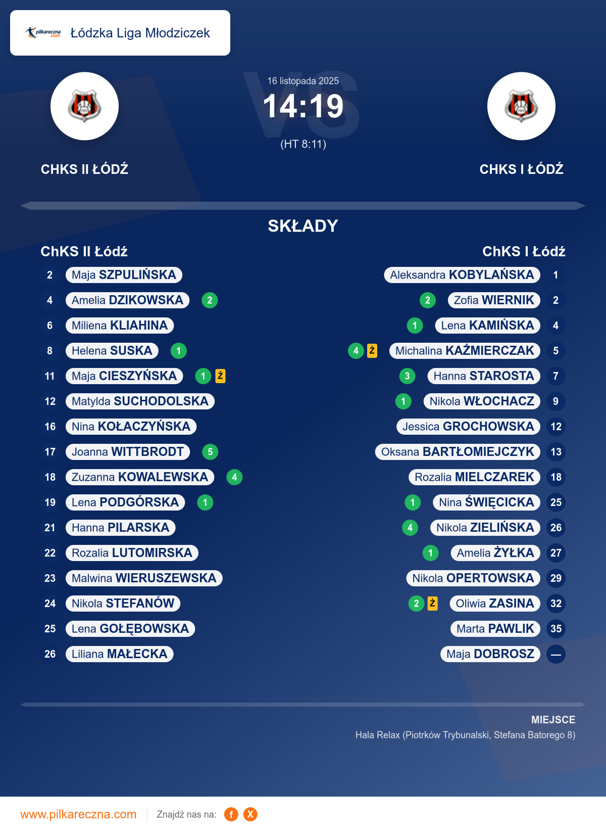Zawodnicy: Michalina Kaźmierczak (4), Nikola Zielińska (4), Hanna Starosta (3), Oliwia Zasina (2), Zofia Wiernik (2), Amelia Żyłka (1), Lena Kamińska (1), Nikola Włochacz (1), Nina Święcicka (1), Maja Dobrosz, Marta Pawlik, Nikola Opertowska, Oksana Bartłomiejczyk, Rozalia Mielczarek