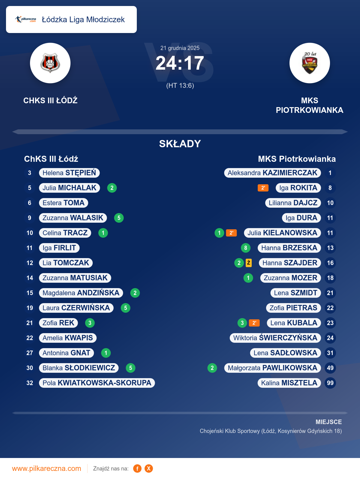 ChKS III Łódź 24–17 MKS Piotrkowianka