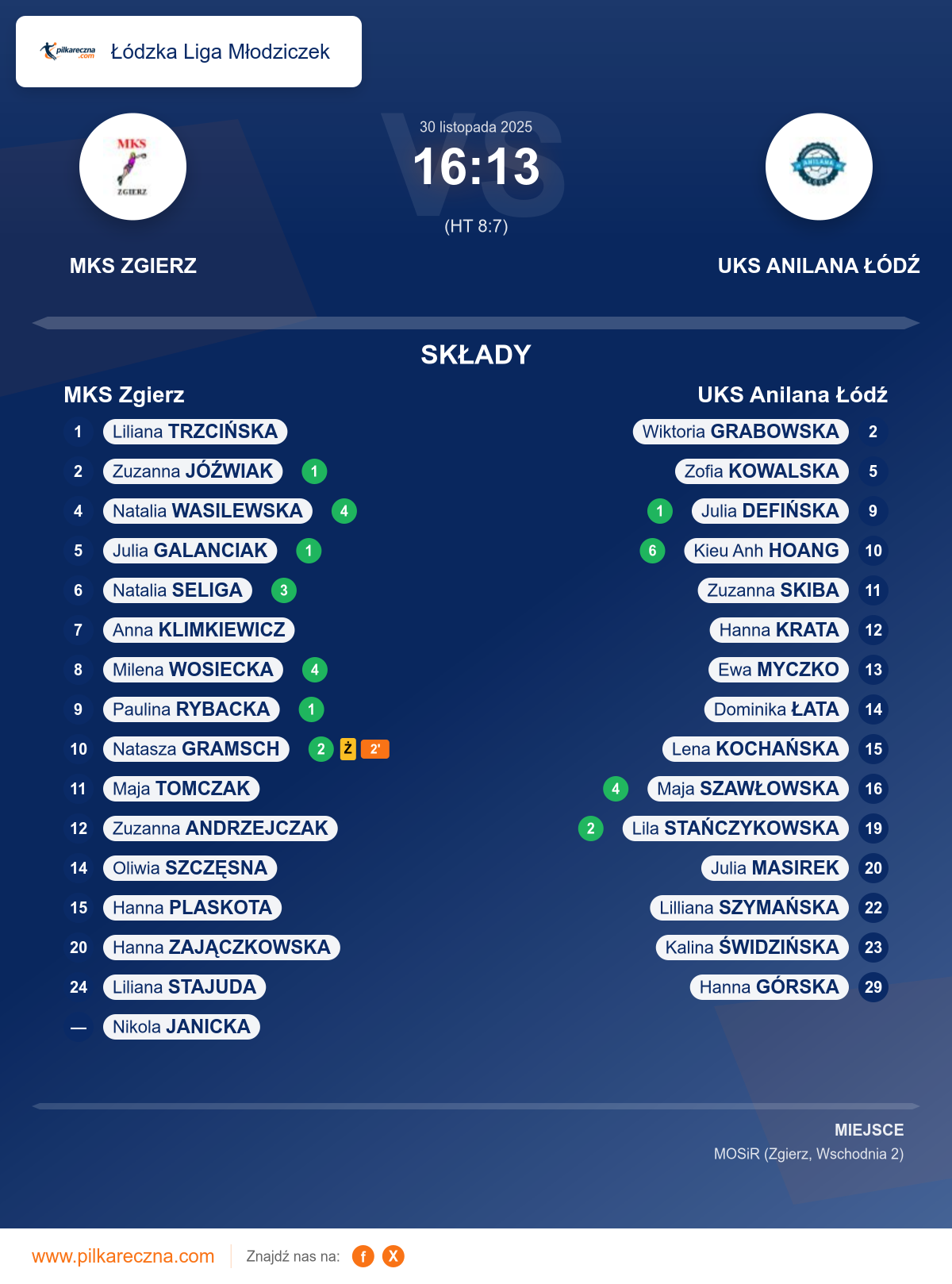 MKS Zgierz 16–13 UKS Anilana Łódź