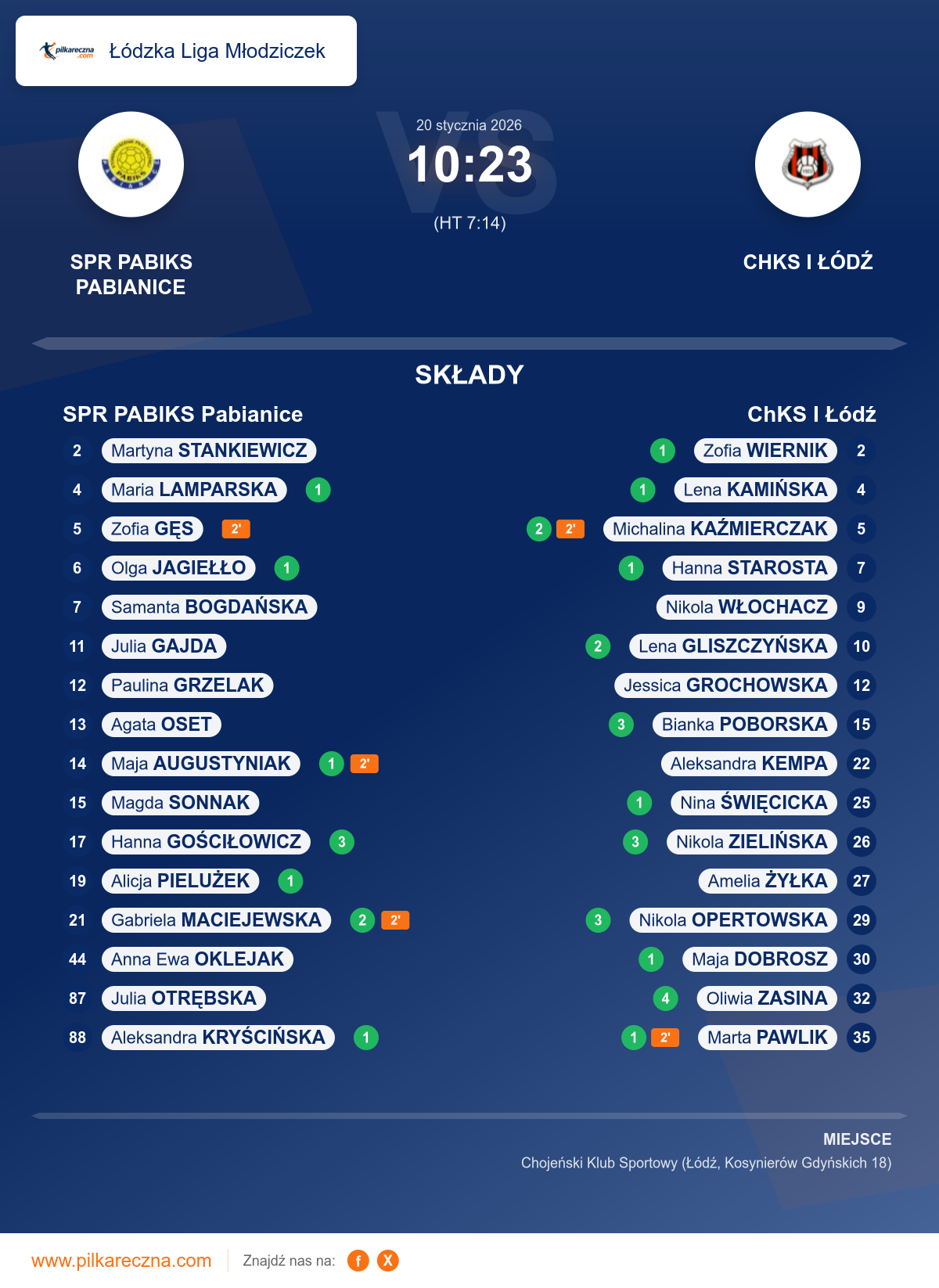 Zawodnicy: Oliwia Zasina (4), Bianka Poborska (3), Nikola Opertowska (3), Nikola Zielińska (3), Lena Gliszczyńska (2), Michalina Kaźmierczak (2), Hanna Starosta (1), Lena Kamińska (1), Maja Dobrosz (1), Marta Pawlik (1), Nina Święcicka (1), Zofia Wiernik (1), Amelia Żyłka, Nikola Włochacz