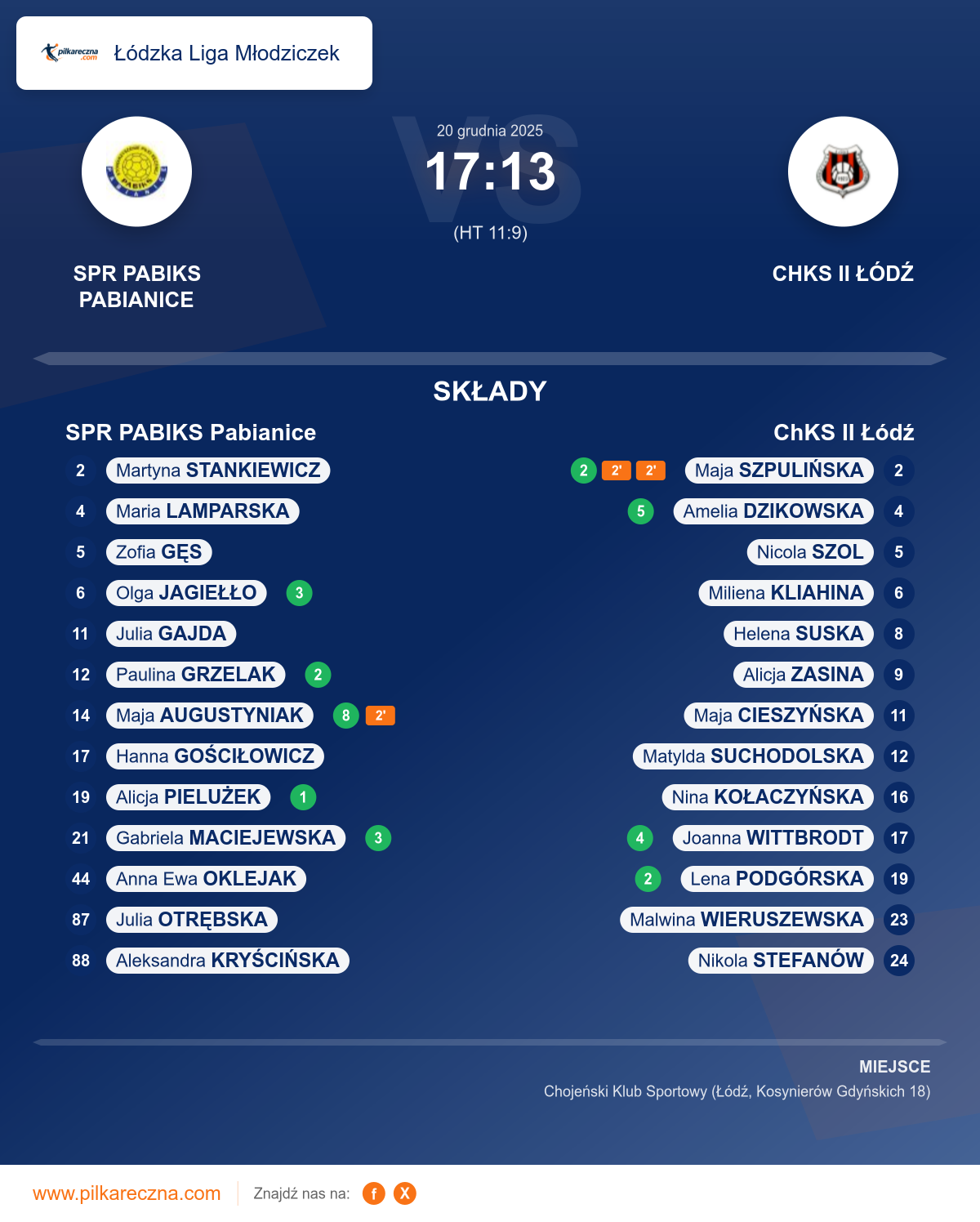SPR PABIKS Pabianice 17–13 ChKS II Łódź